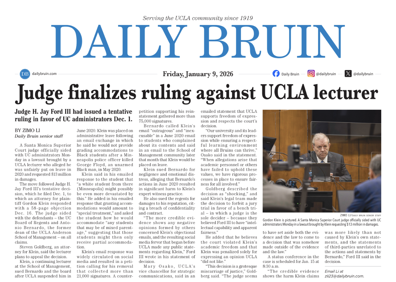 Gov. Gavin Newsom proposed a state budget Friday for the 2026-27 fiscal year that included an increase of $350.6 million in funding to the UC.