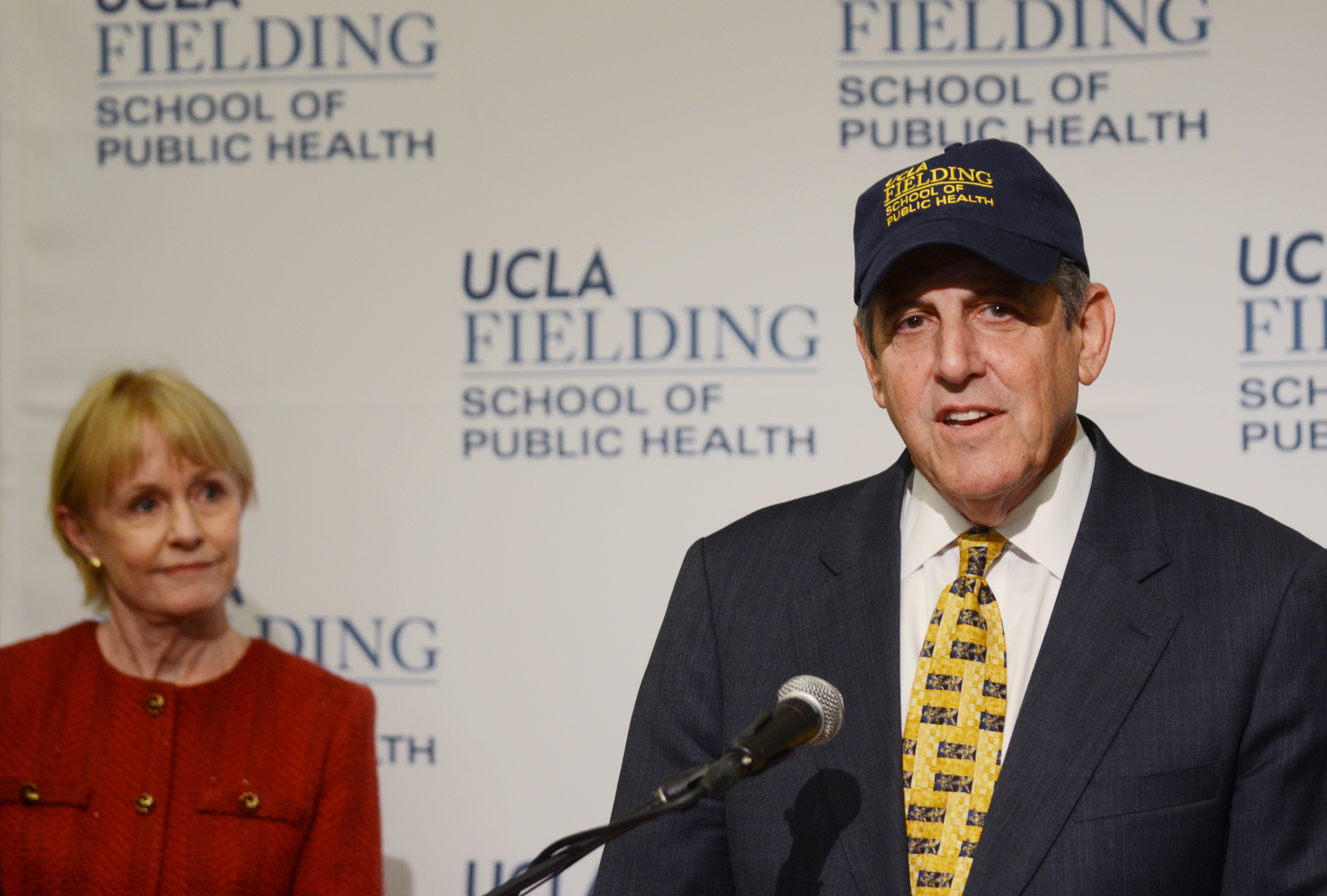 The school will be renamed the UCLA Jonathan and Karin Fielding School of Public Health in their honor. At a press conference on Thursday, in a room filled with people from the School of Public Health wearing hats with the school’s new name on the front, Rosenstock called this the “single most historic day” in the school’s history since its opening 50 years ago.