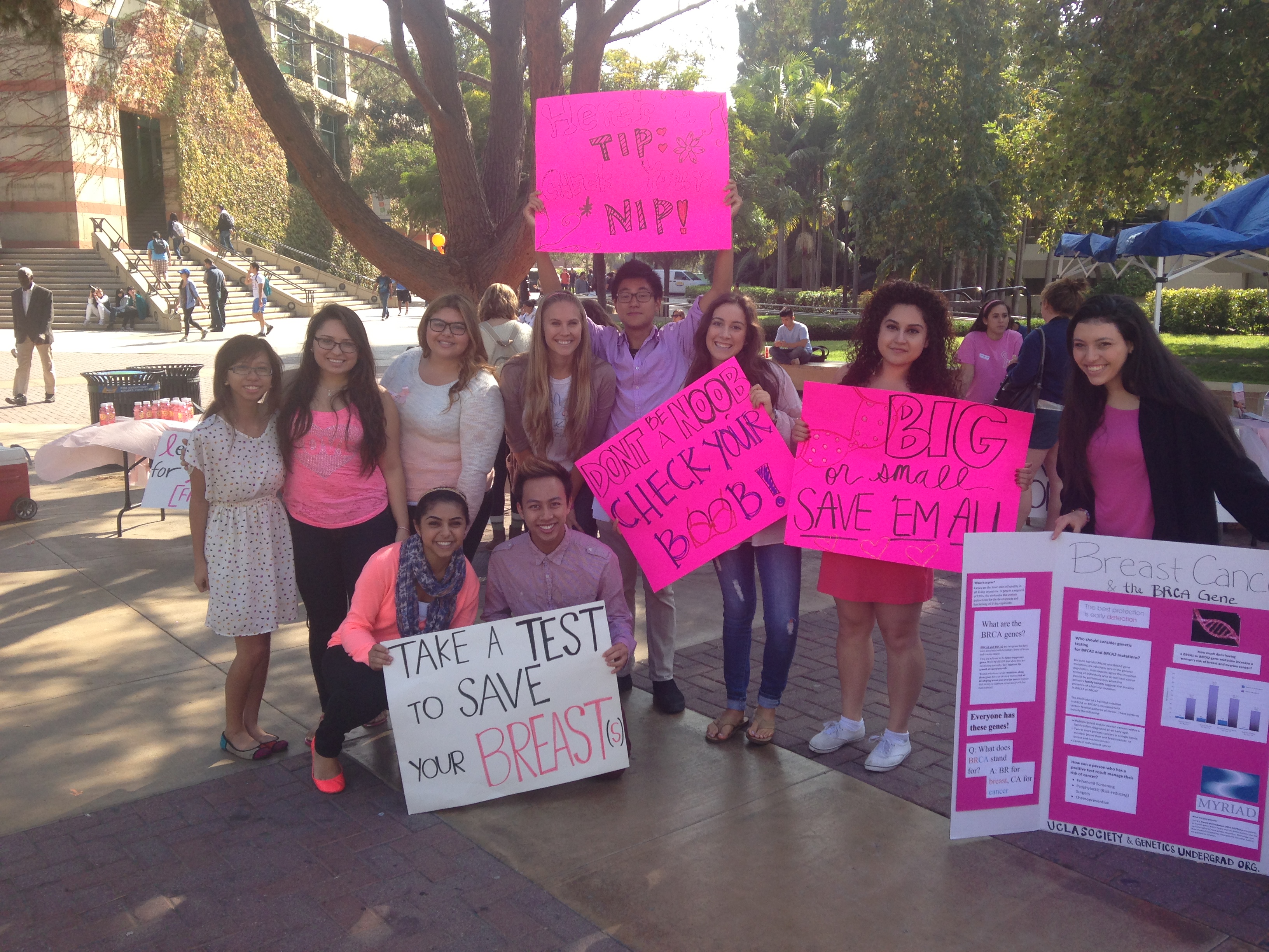 Students from Colleges Against Cancer rallied for the early detection and prevention of breast cancer in Bruin Plaza.