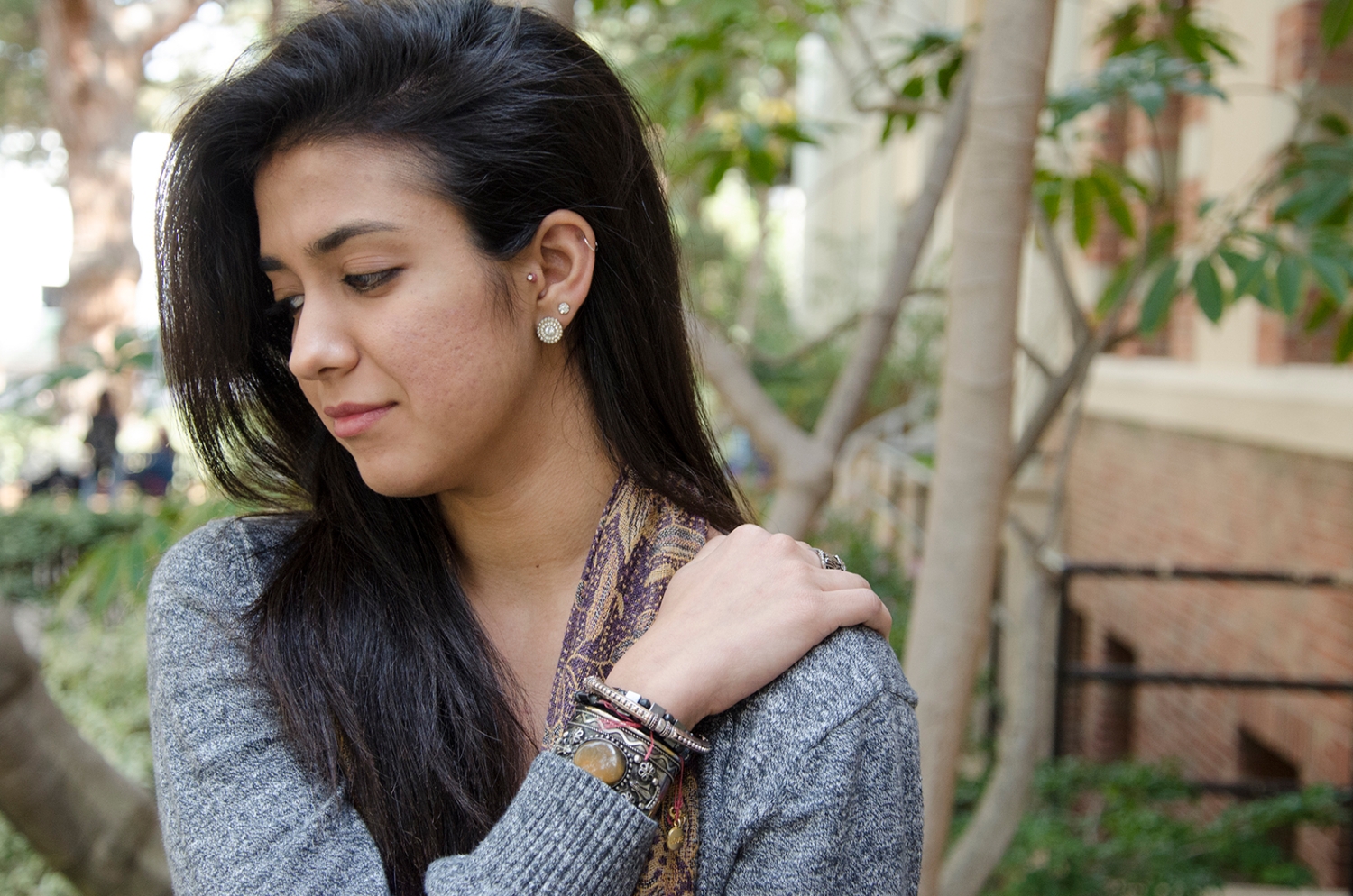 “My earliest piercings were from when I was a baby, but I've progressively gotten more throughout middle school and high school. My bracelet is from India...I haven't been back in a while.” -Anoushka Dua, fourth-year physiological science student