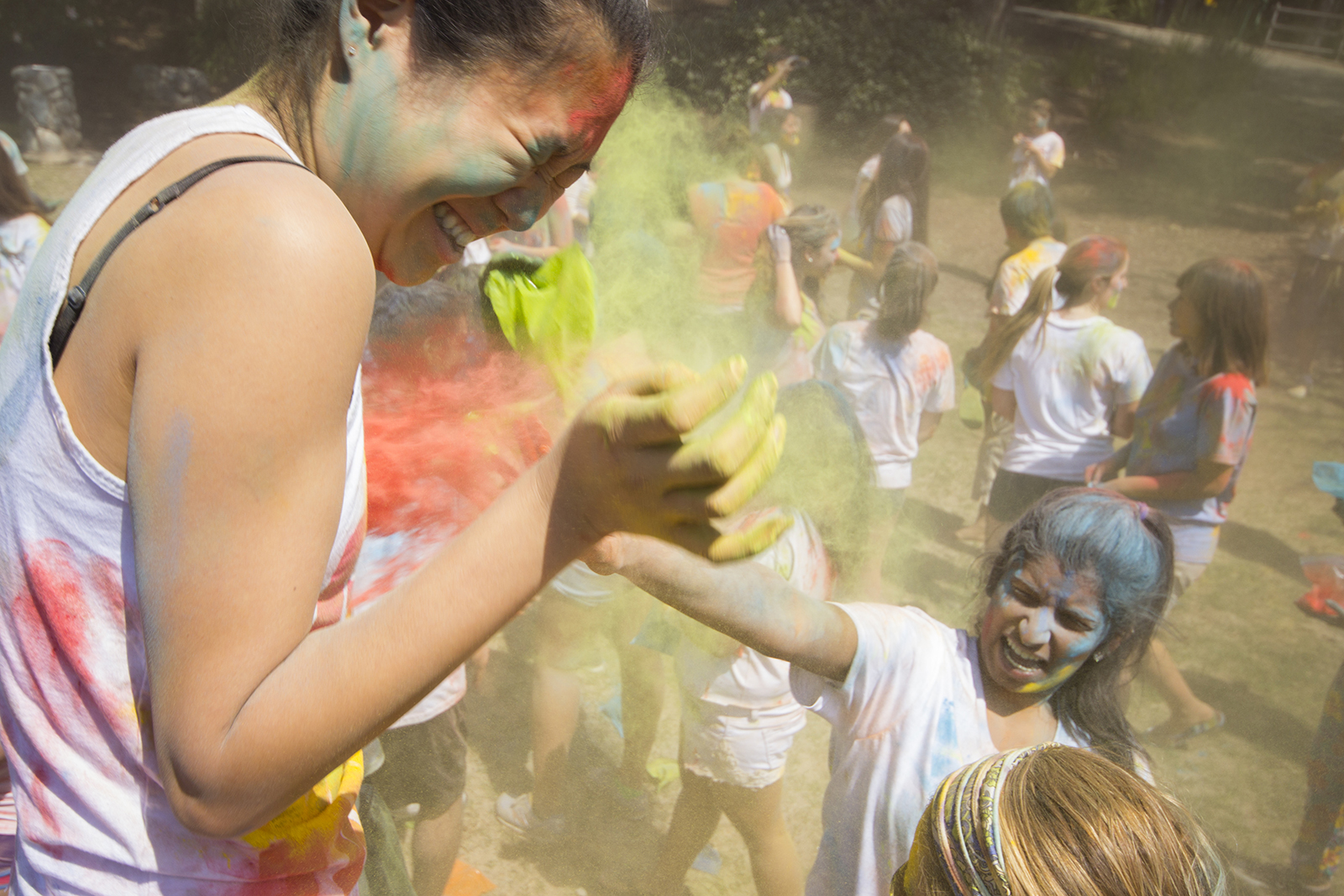 To celebrate Holi, students wore white shirts they coated with more than 500 pounds collectively of water-soluble colored powder.