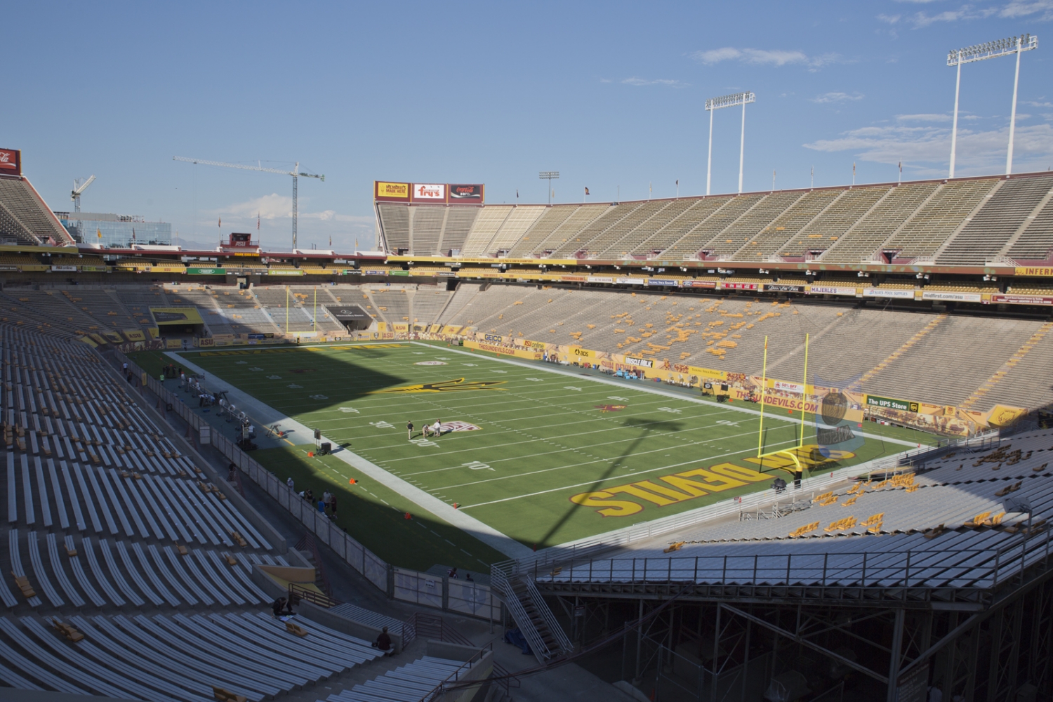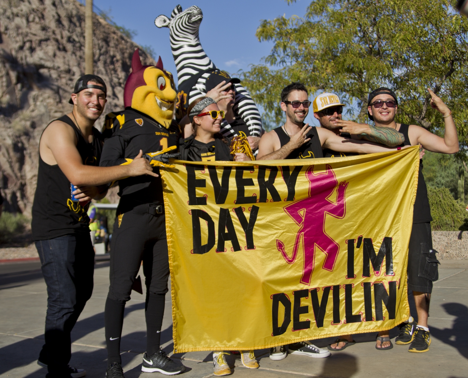 Arizona State fans pose with the school's mascot prior to the start of the game, Thursday.