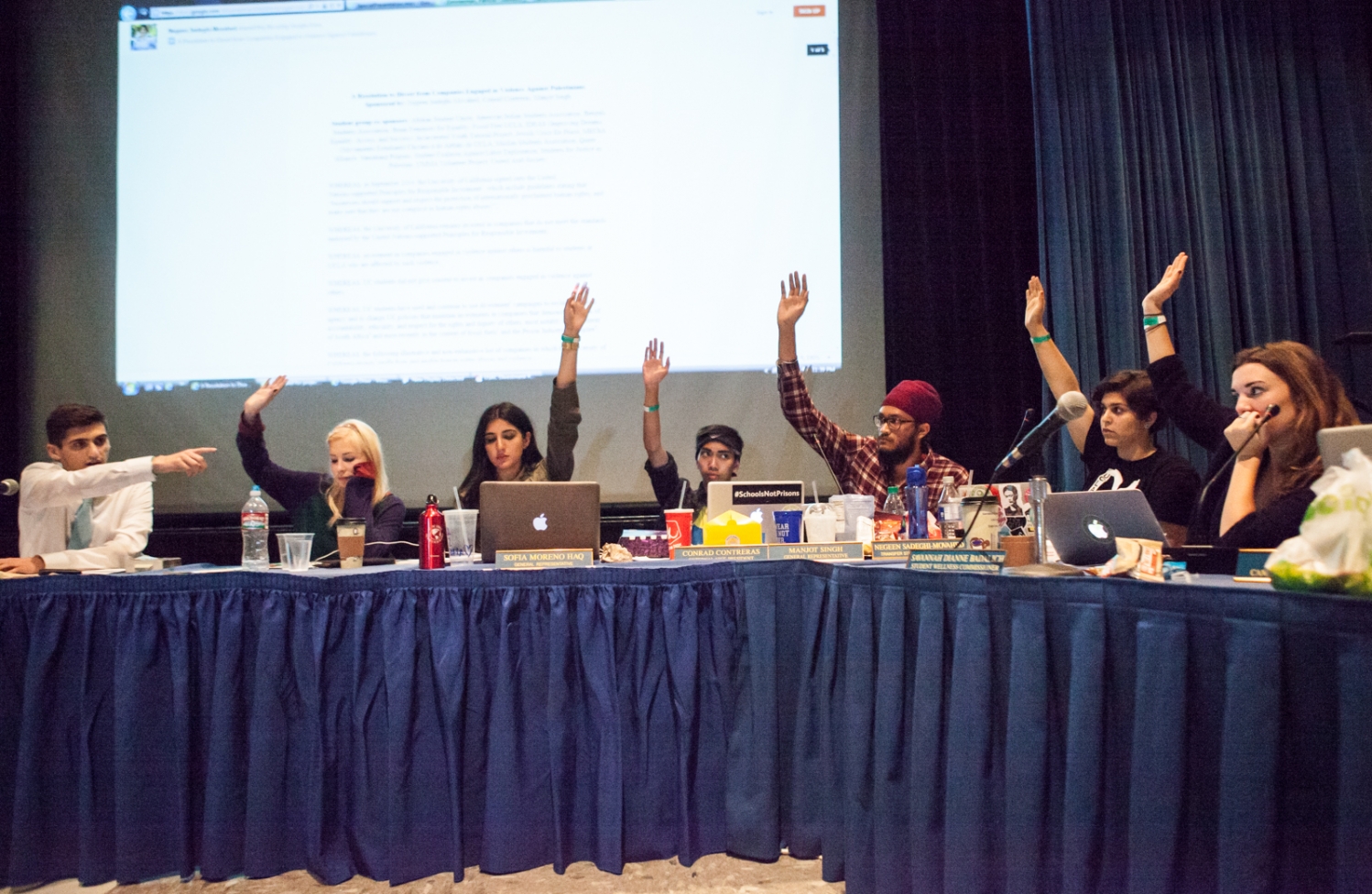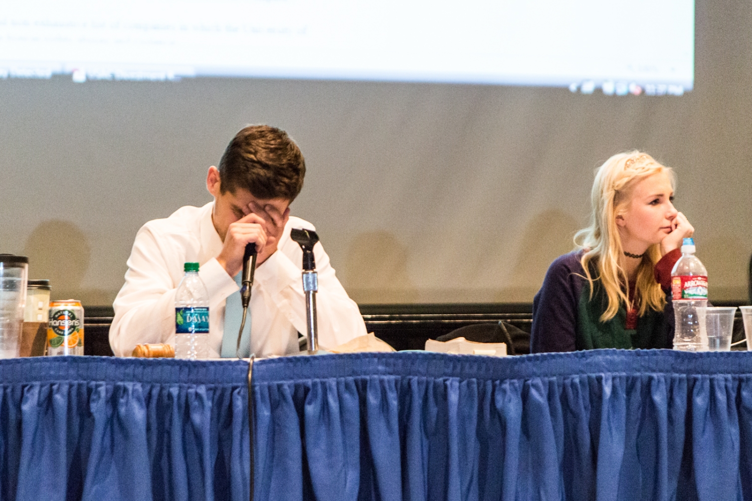 Students in support of the divestment resolution presented arguments in favor of it before the council moved to a discussion.