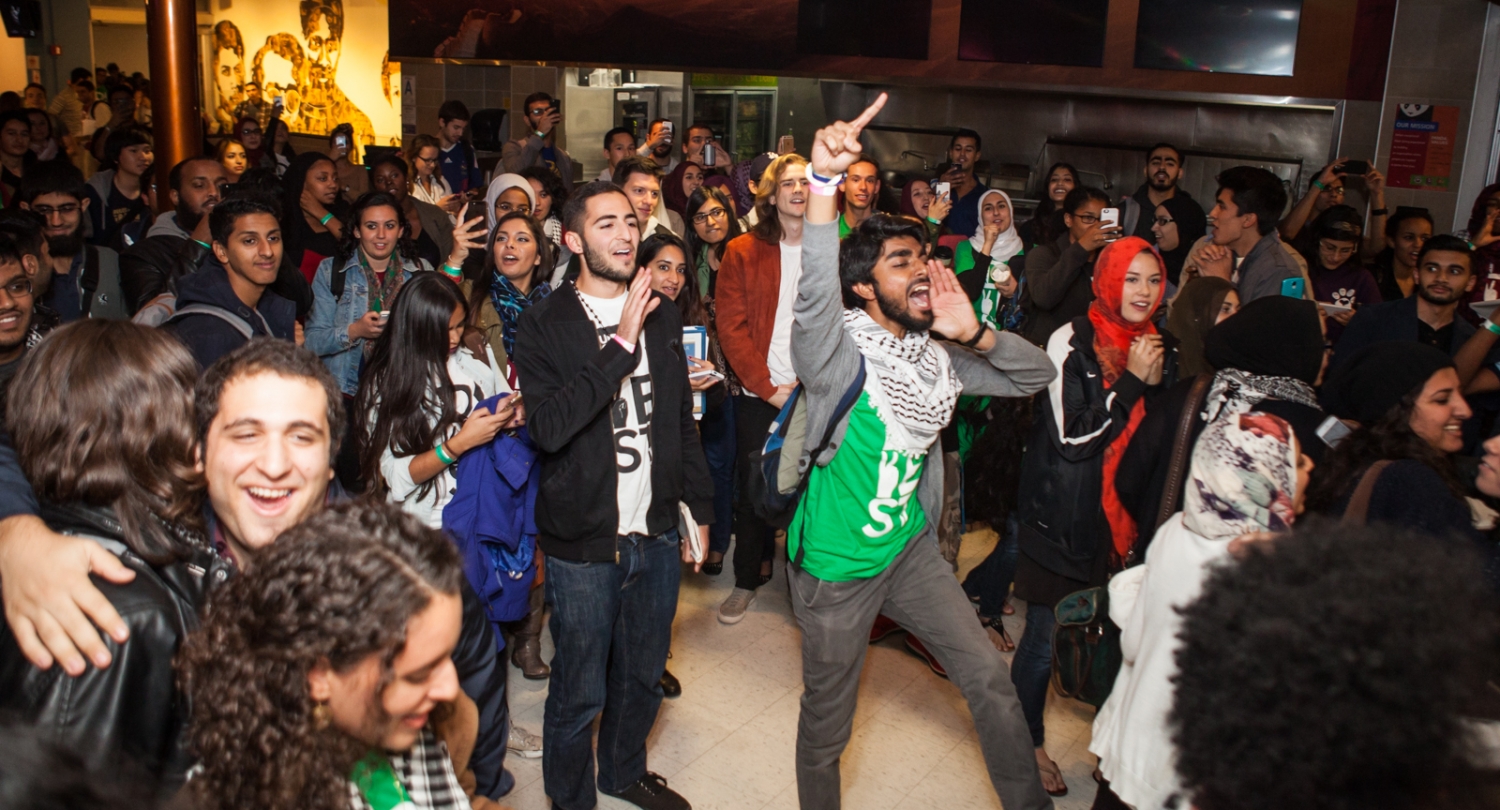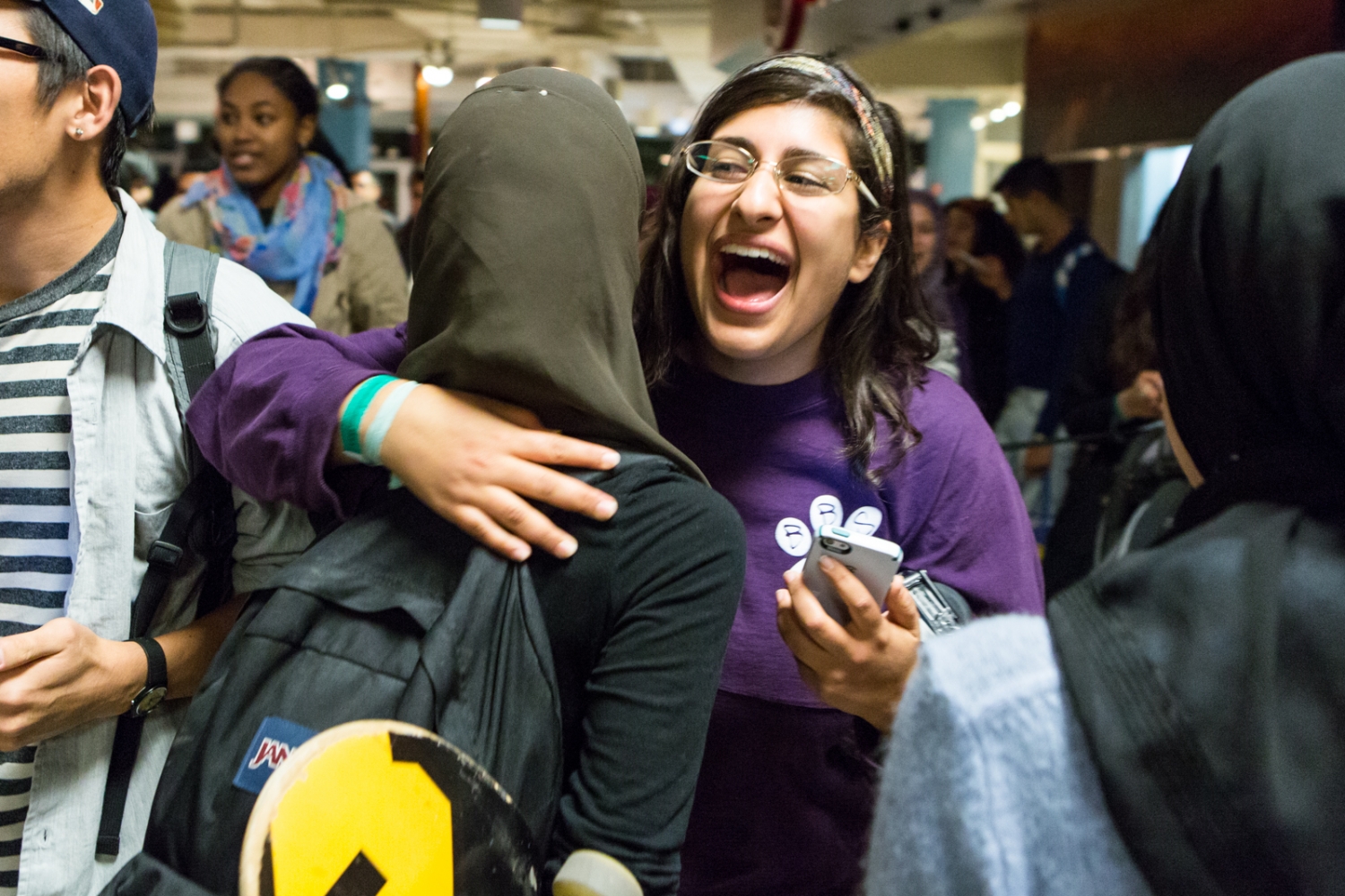 Students in support of the divestment resolution celebrated together in Ackerman Student Union after the vote.