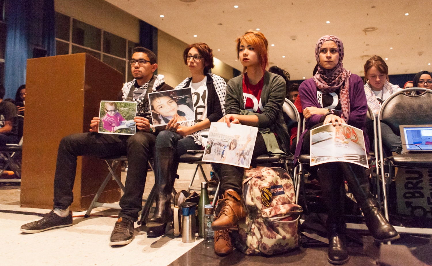 Students sitting in the front row of the USAC meeting held photos of their loved ones up to the council.