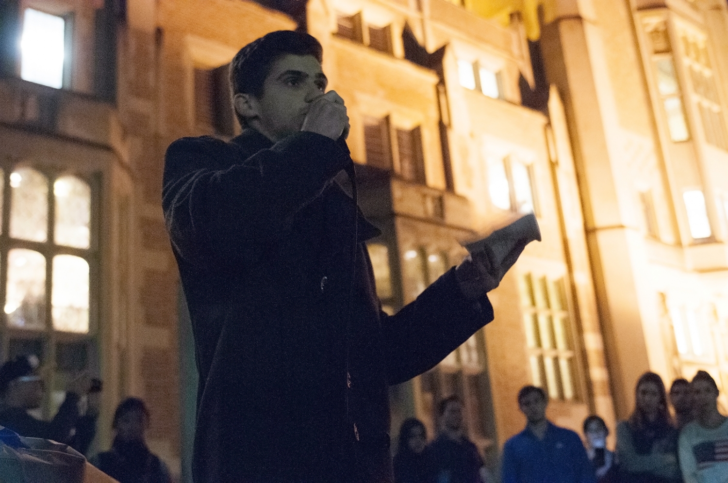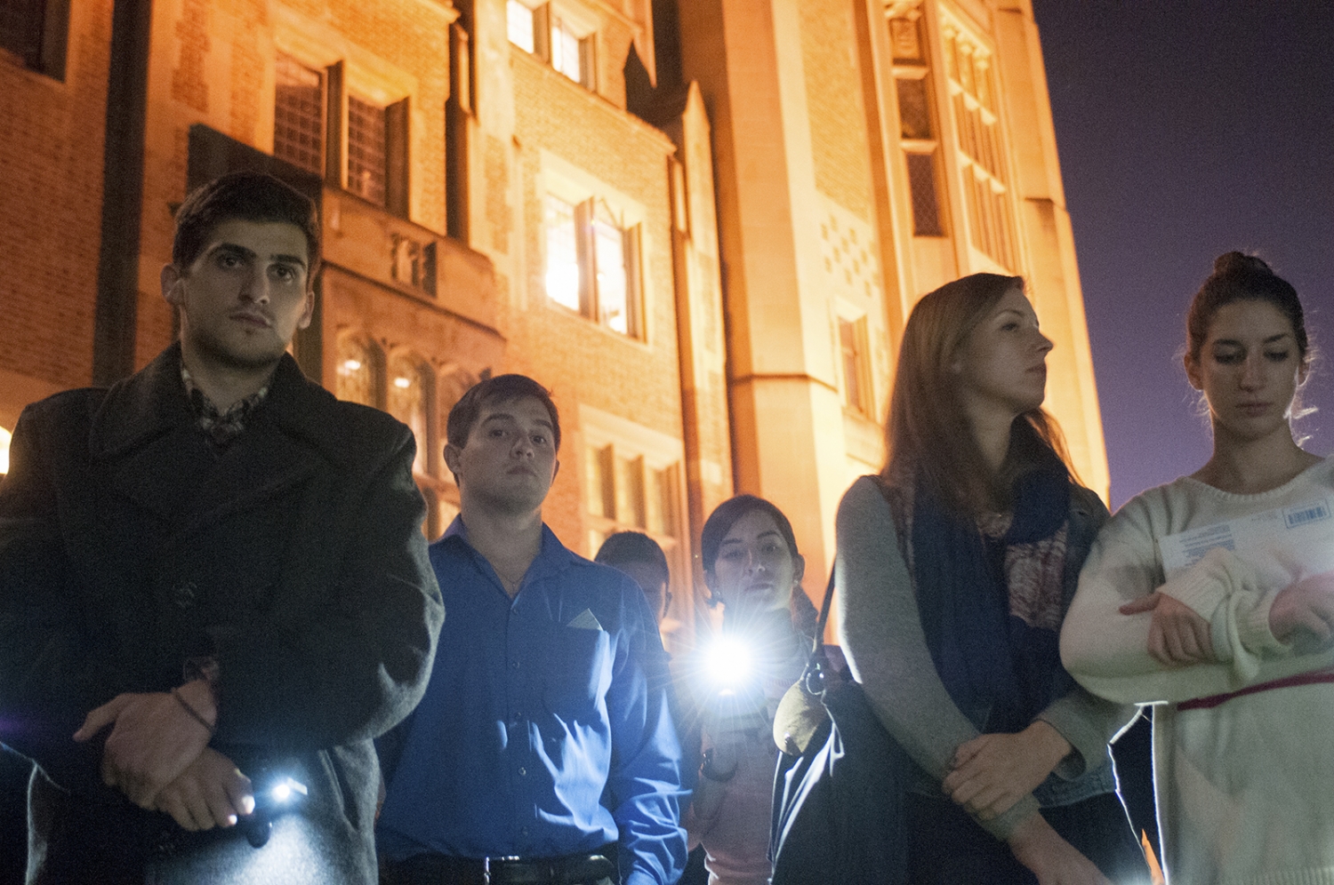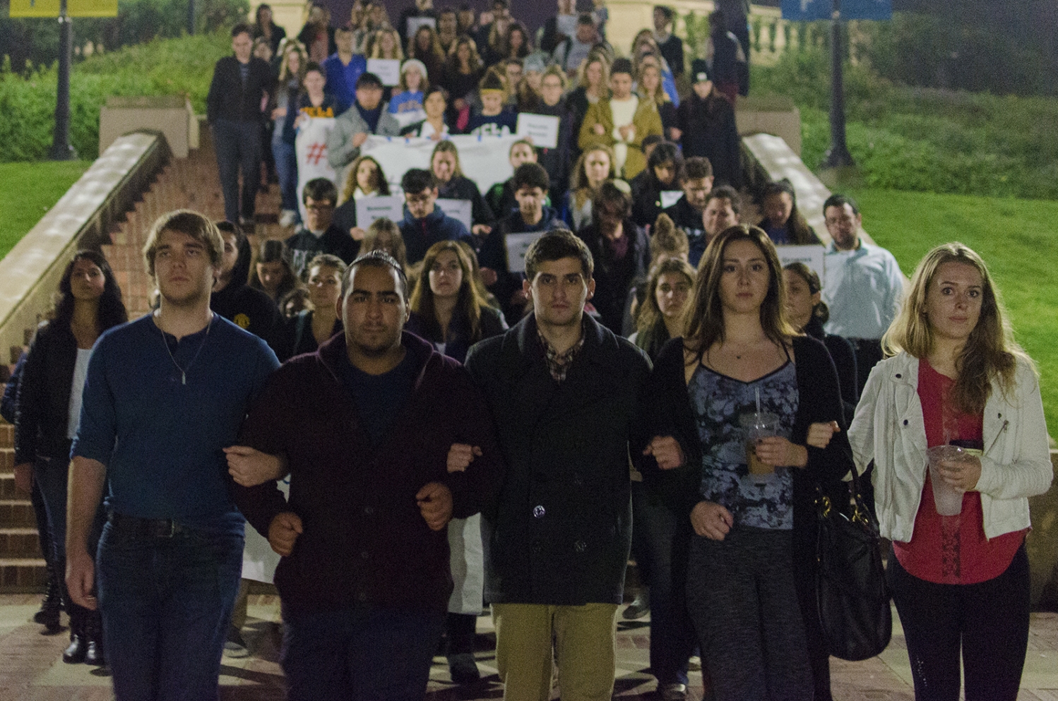 Students march throughout campus at night to support those personally affected by the incident.
