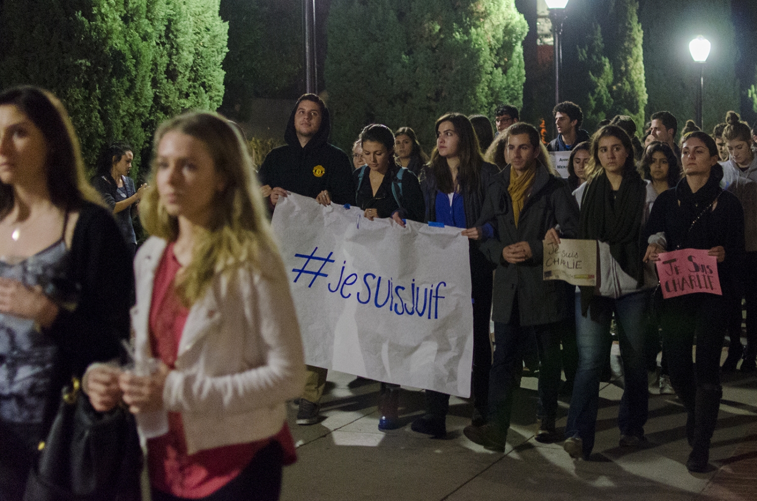 Holding signs marked "Je Suis Charlie," participants walked throughout campus to commemorate those fallen.