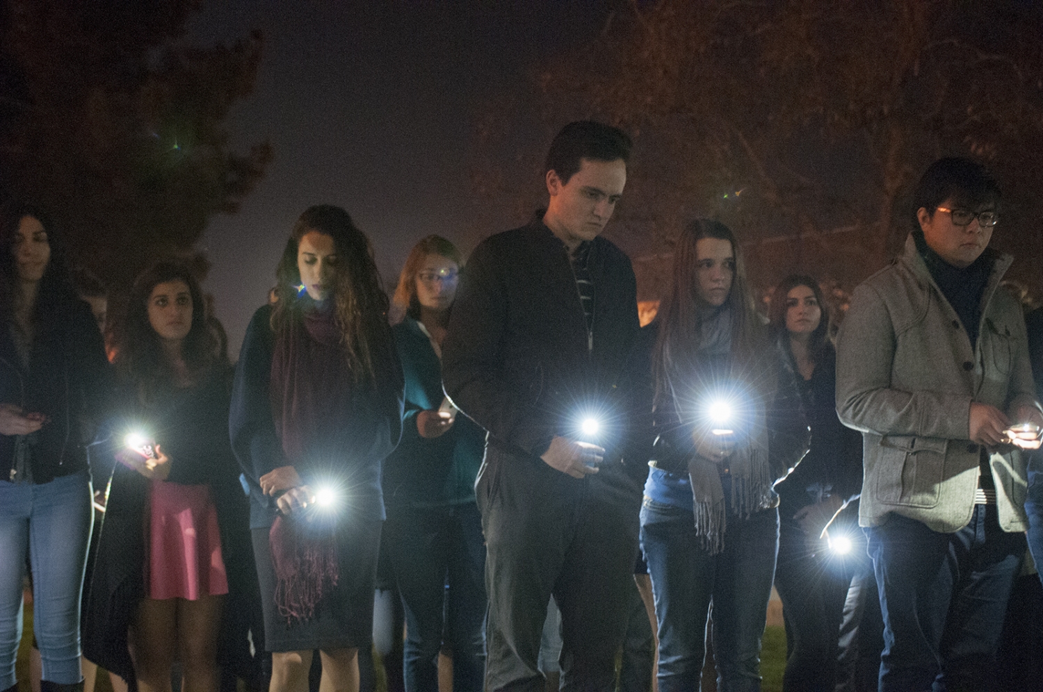 Students gathered outside of Meyerhoff Park and used their cellphones as a signal of solidarity.