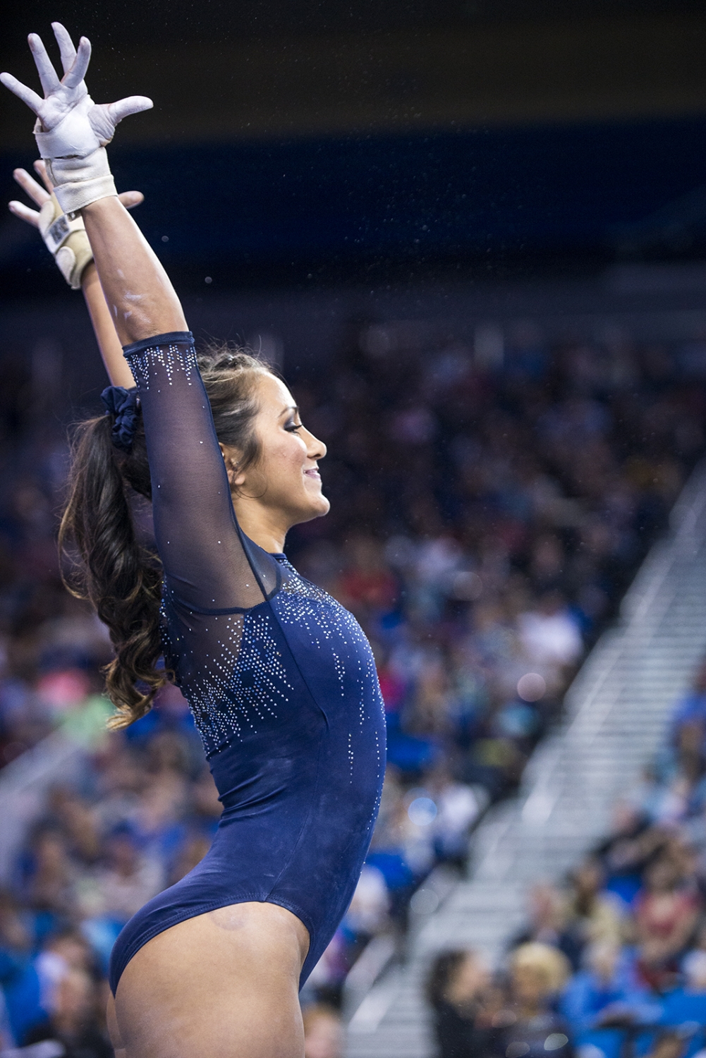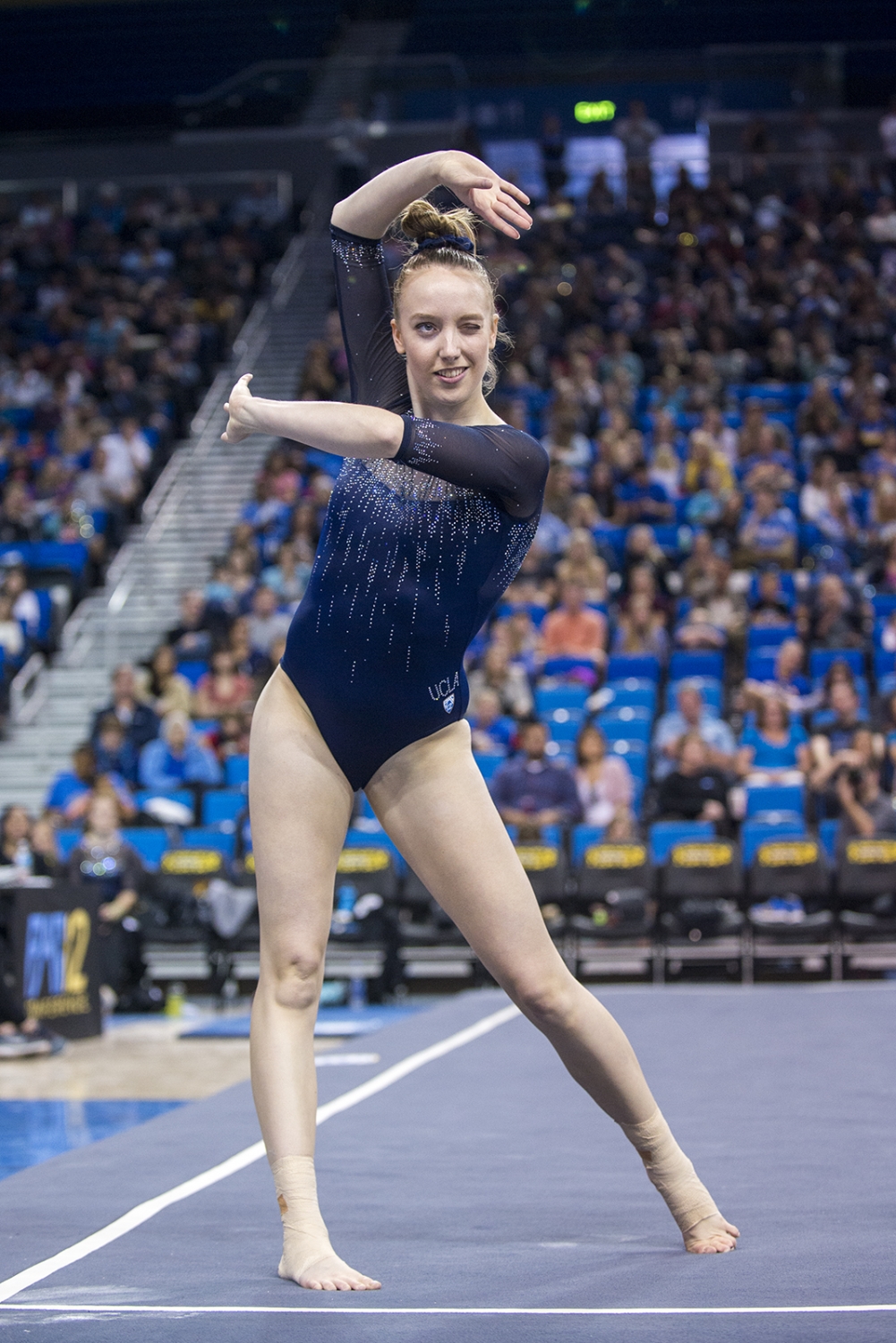 Sophomore Jennifer Pinches scored a 9.675 on floor exercise.