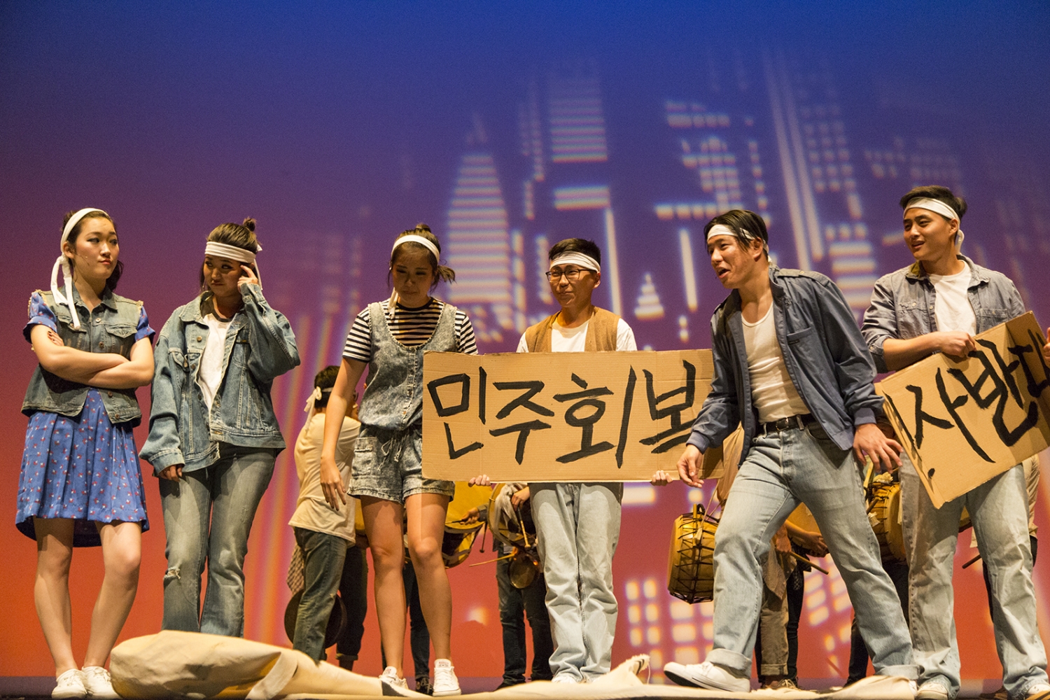 An older Han Areum and Young, who have now emigrated to America, reminisce about their younger days in Korea during the democratic protests.