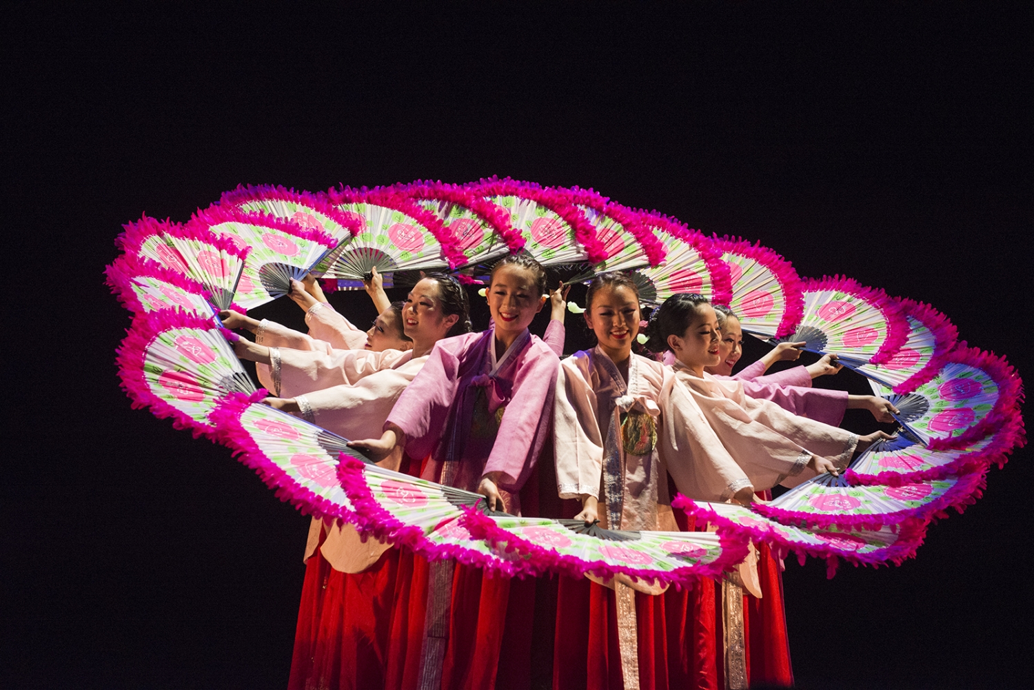 Han Areum reminisces about her college days when she was a dance major. Here she performs the fan dance with her friends.