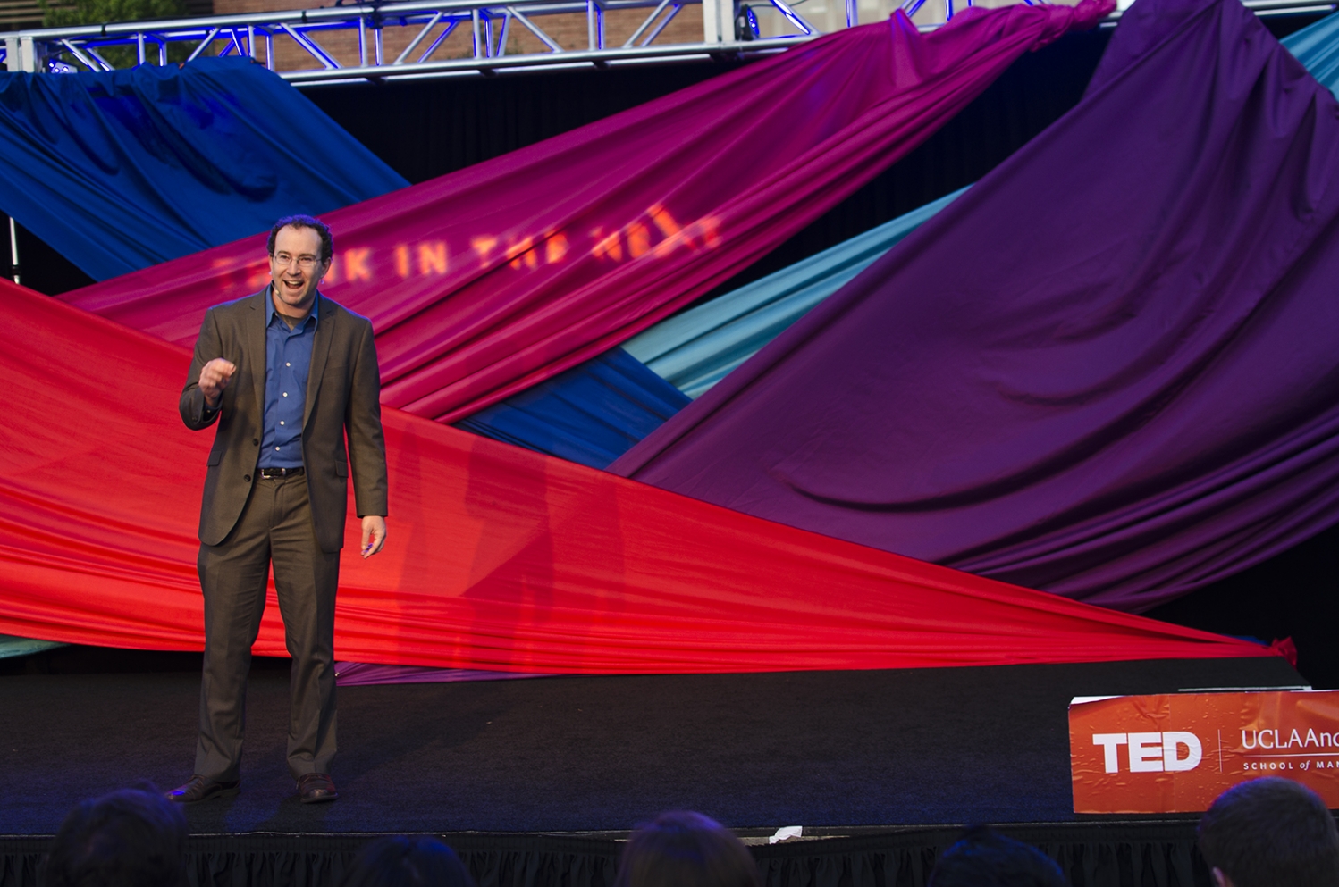 Professor of Marketing and Psychology Danny Oppenheimer spoke to the audience about the pros and cons of democracy at the TED Week at UCLA event.