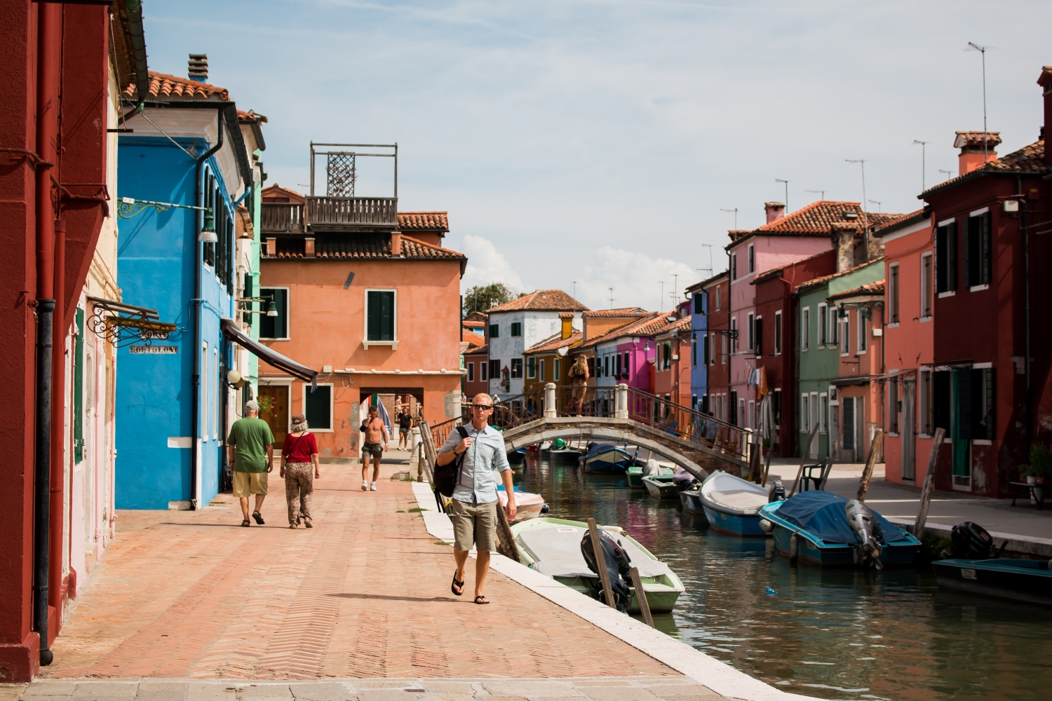 Burano, an island in the Venetian Lagoon, is famous for its colored houses and bridges.