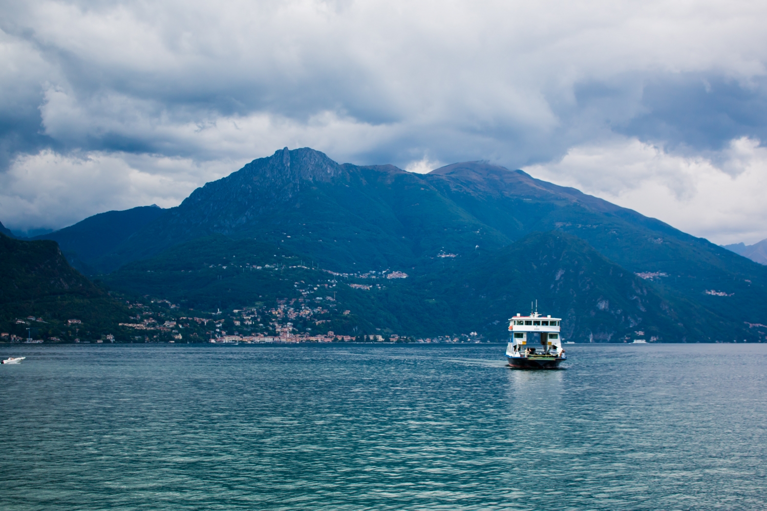A cruise ship approaching Bellagio, Lake Como, moments before a thunderstorm.
