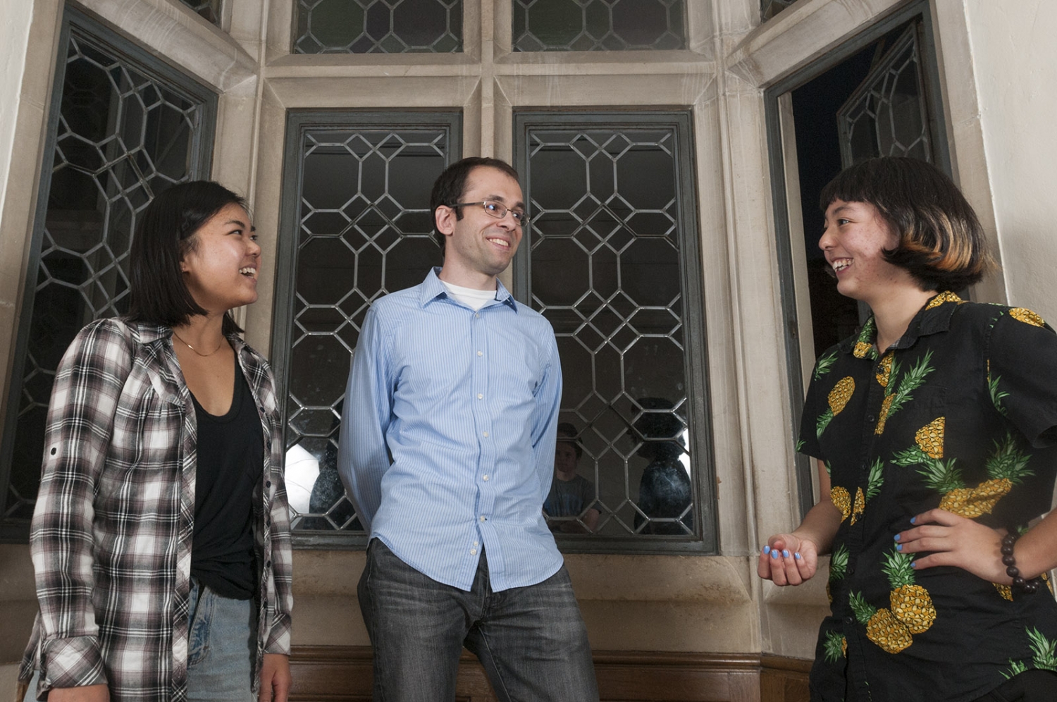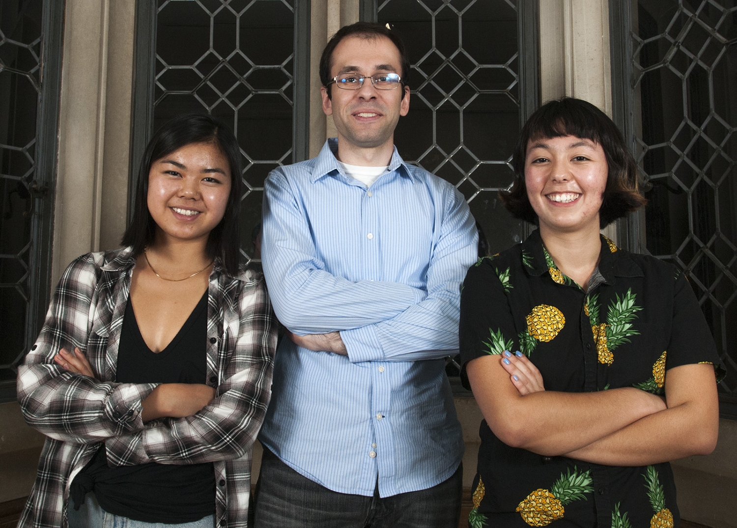 Hammer Museum student educators and UCLA students Audrey Brown (left), Martin Spasov (center) and Weiwen Balter (right) lead "conversations" between two artworks in the Art in Conversation program on Sundays.