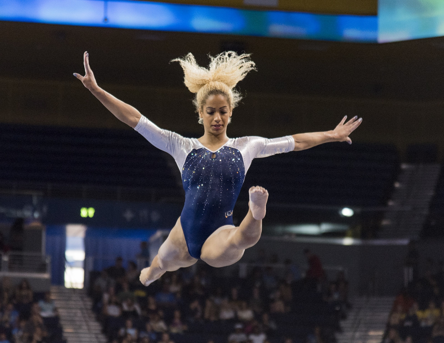 After senior Danusia Francis notched a 9.825, senior Sophina DeJesus took to the mat to make her season debut on floor and nearly matched her career high with a 9.925. Ending her routine with “the dab,” Dejesus sent the 7,546-person crowd into a frenzy.