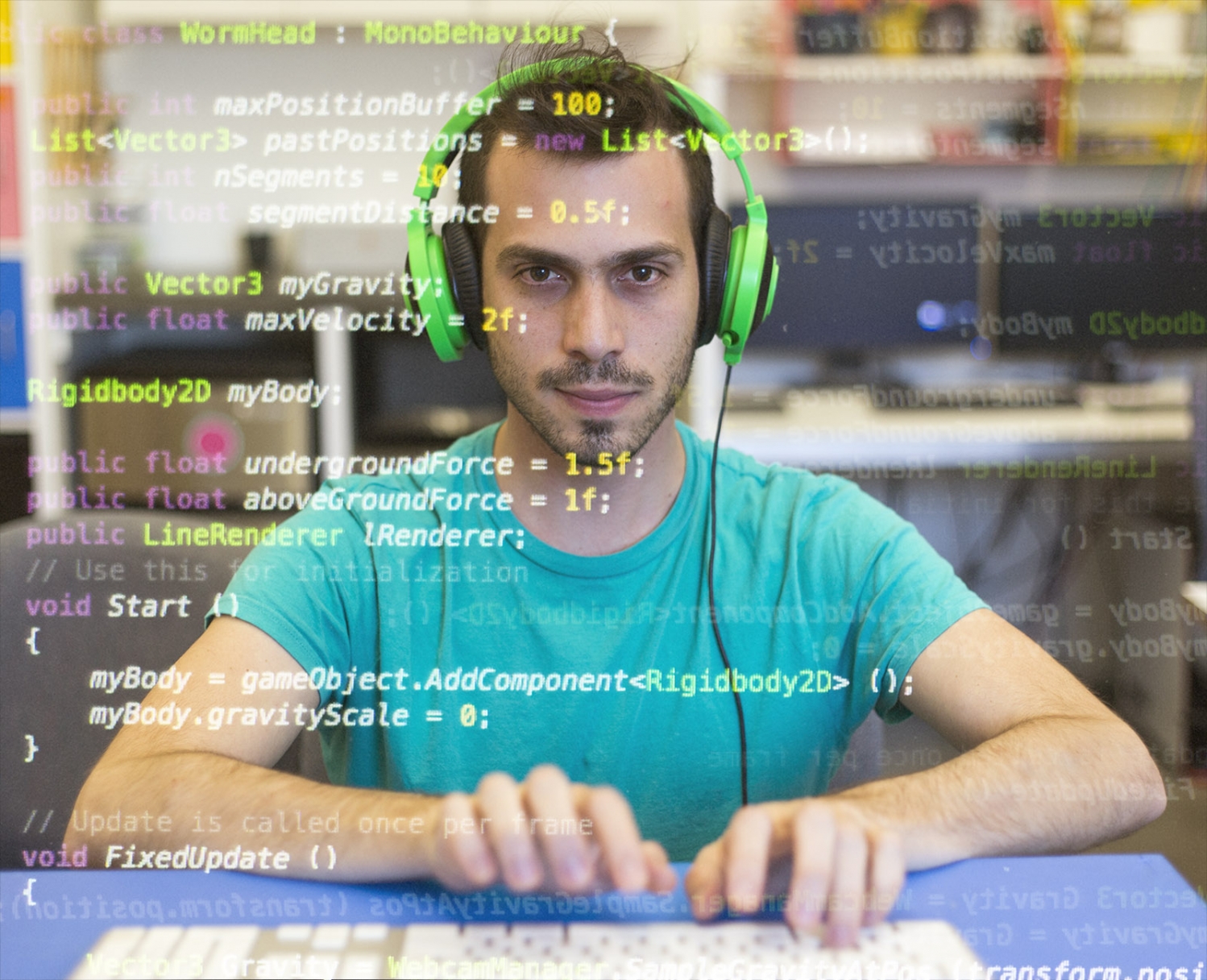 Computer Science and Design Media Arts Students search for campus resources in video game programming.