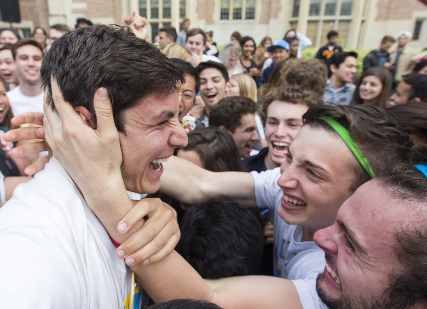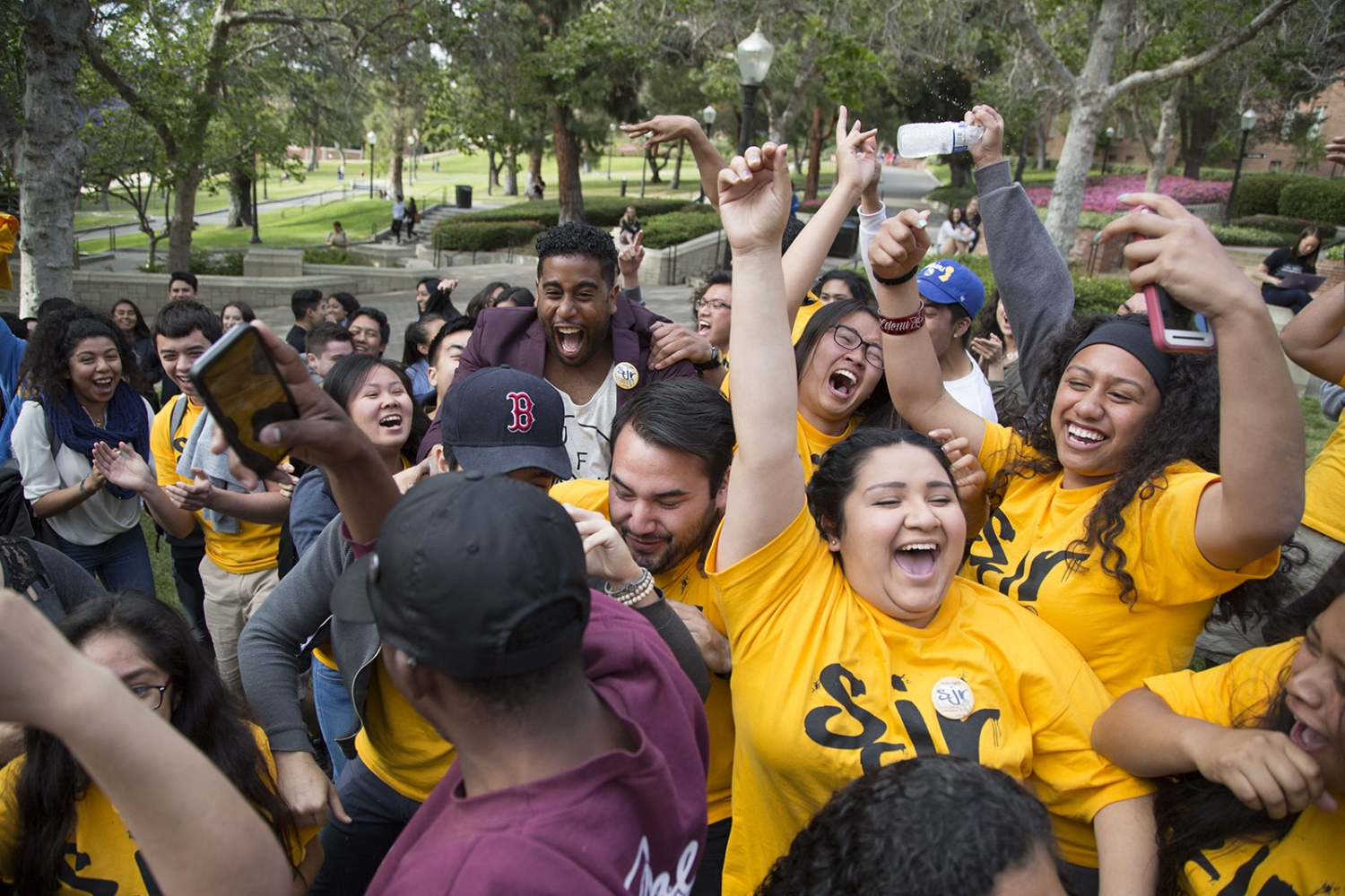 Bruins United supporters congratulate Danny Siegel after he is elected USAC president with a 52.2 percent of the vote.