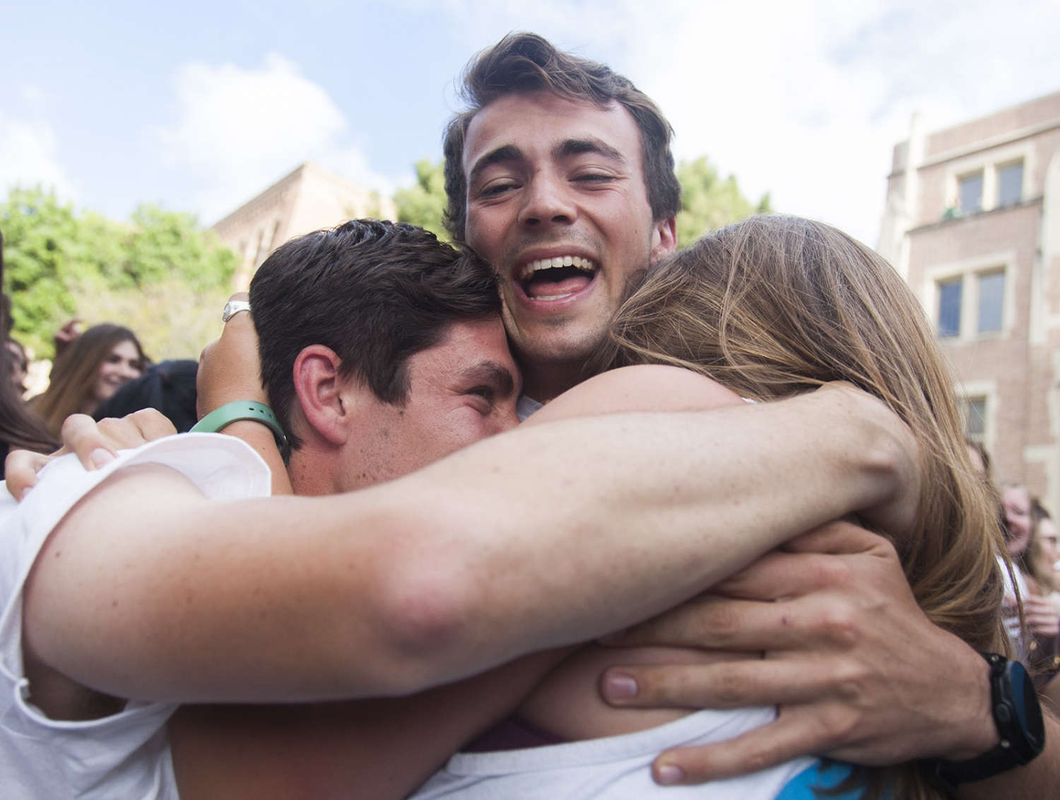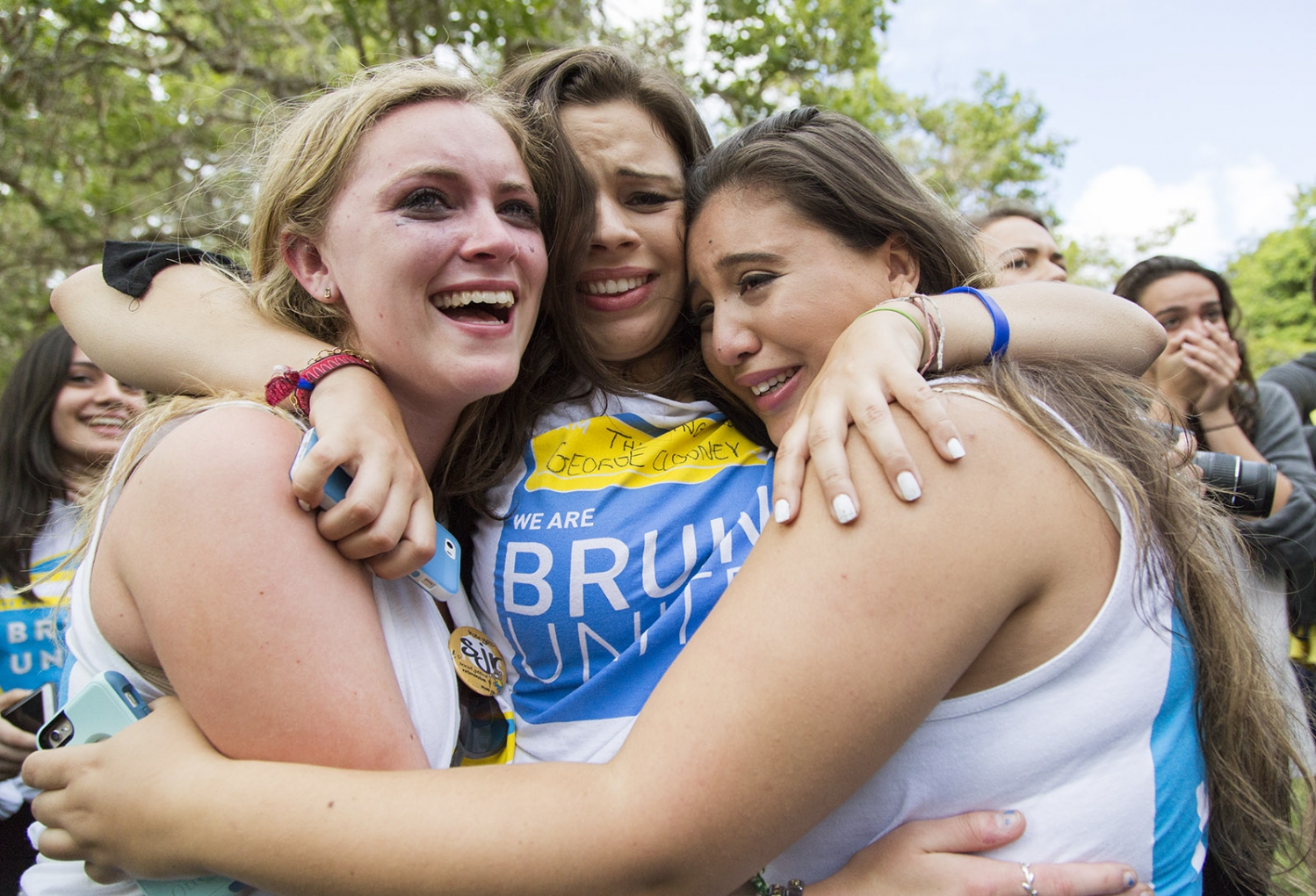 Bruins United candidates hold each other after various members won office positions.