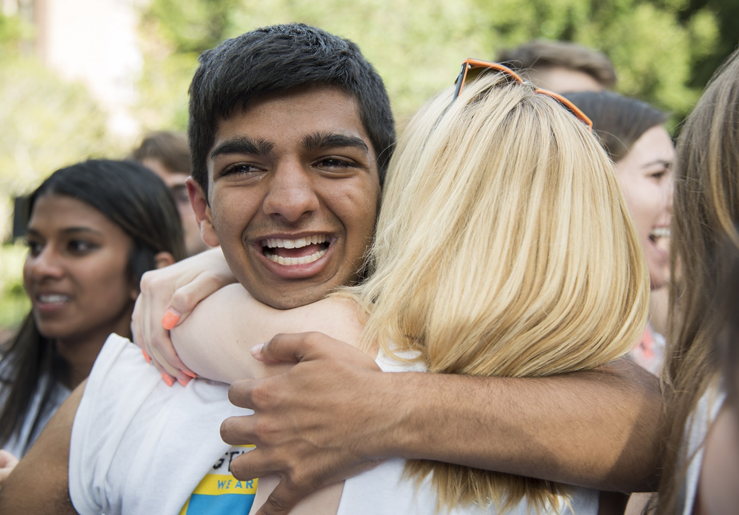 Siegel embraces friends and supporters following his win in USAC elections.