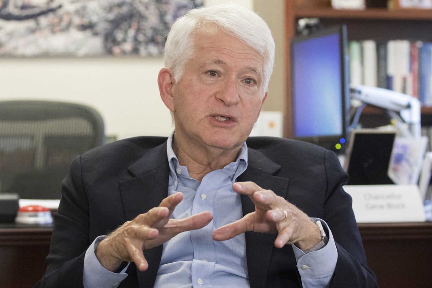 The Daily Bruin spoke with Chancellor Gene Block on Monday about free speech concerns and out-of-state student admissions. He also commented on recent campus discussions about leaked Pi Kappa Phi meeting minutes and sexual assault policy.