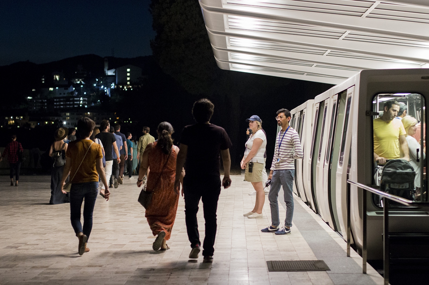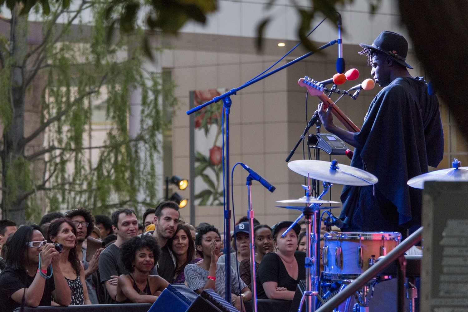 Guests leave after Moses Sumney’s performance for Saturdays Off the 405, a Getty Center summer concert series.