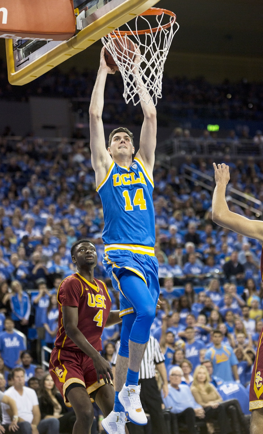 Junior forward Gyorgy Goloman goes for a jam against the Bruins' crosstown rivals.
