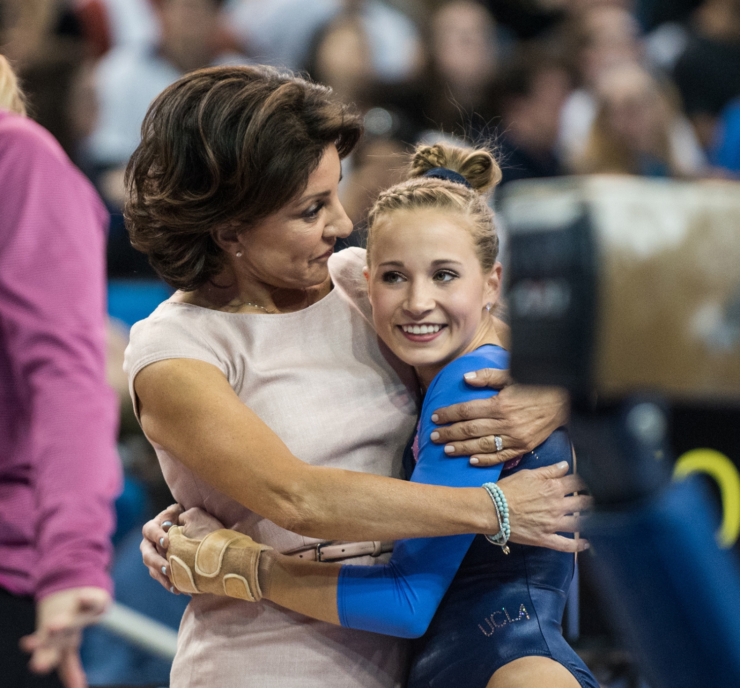 Kocian hugs coach Valorie Kondos Field following her beam performance.