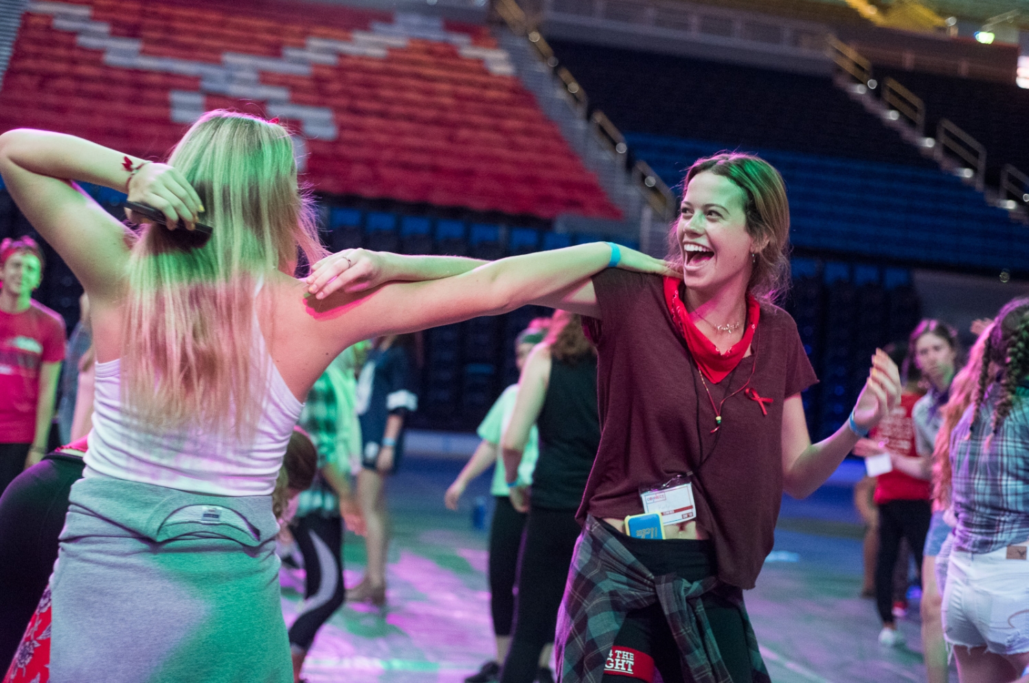 First-year communication student Kiersten Hazard danced in sync with first-year communication student Karly Peterson.
