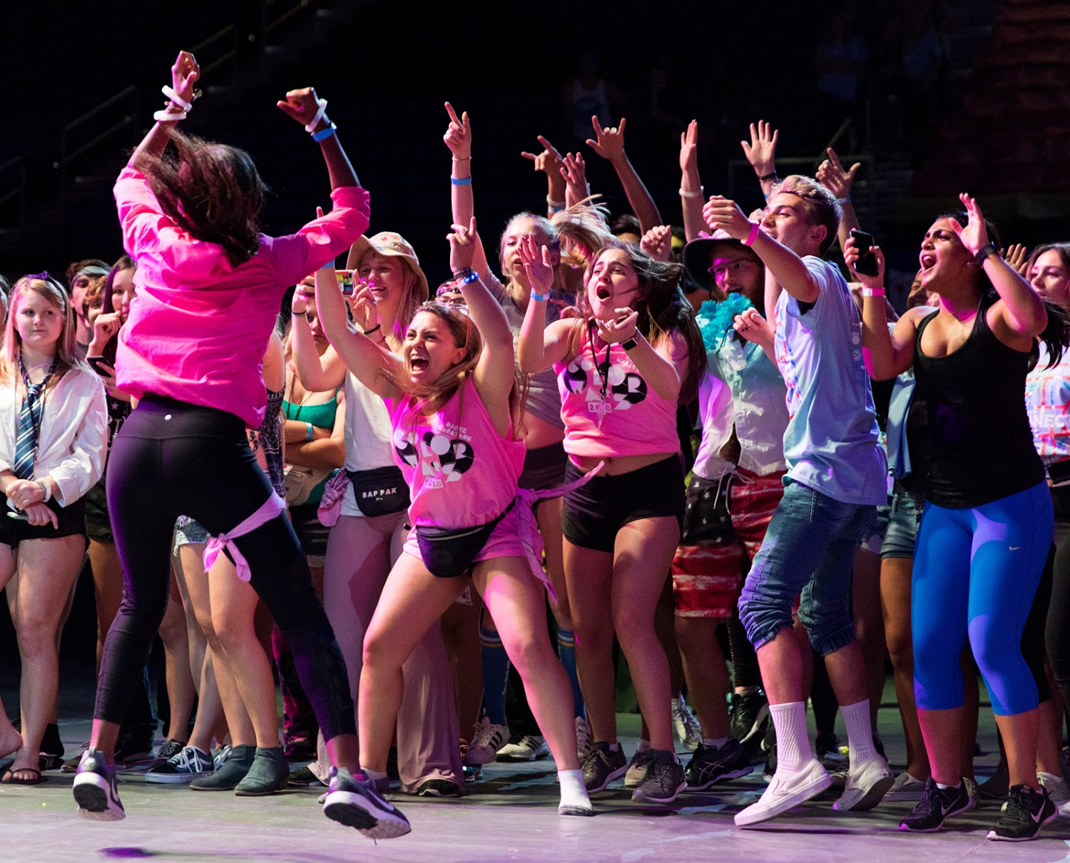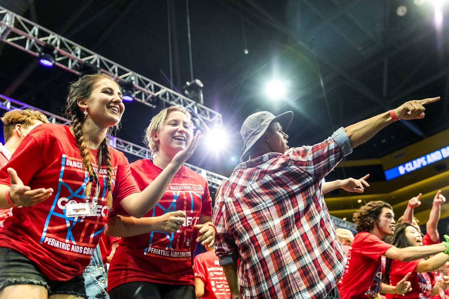 The Pediatric AIDS Coalition ambassadors filled the stage during Power Hour, the last hour of Dance Marathon.