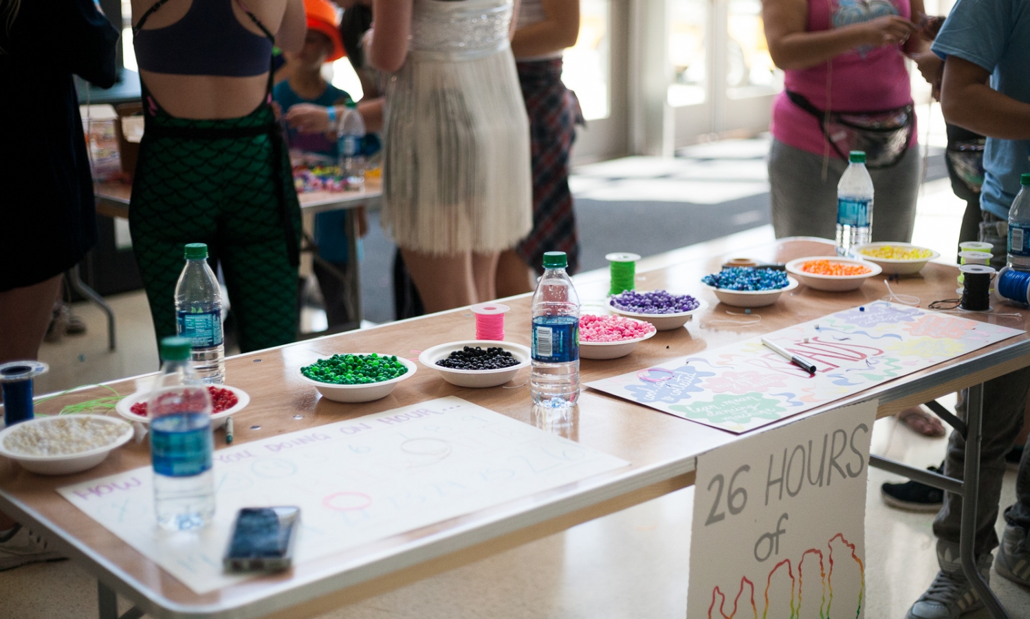 Arts and crafts lined the concourse, providing entertainment opportunities for tired dancers.