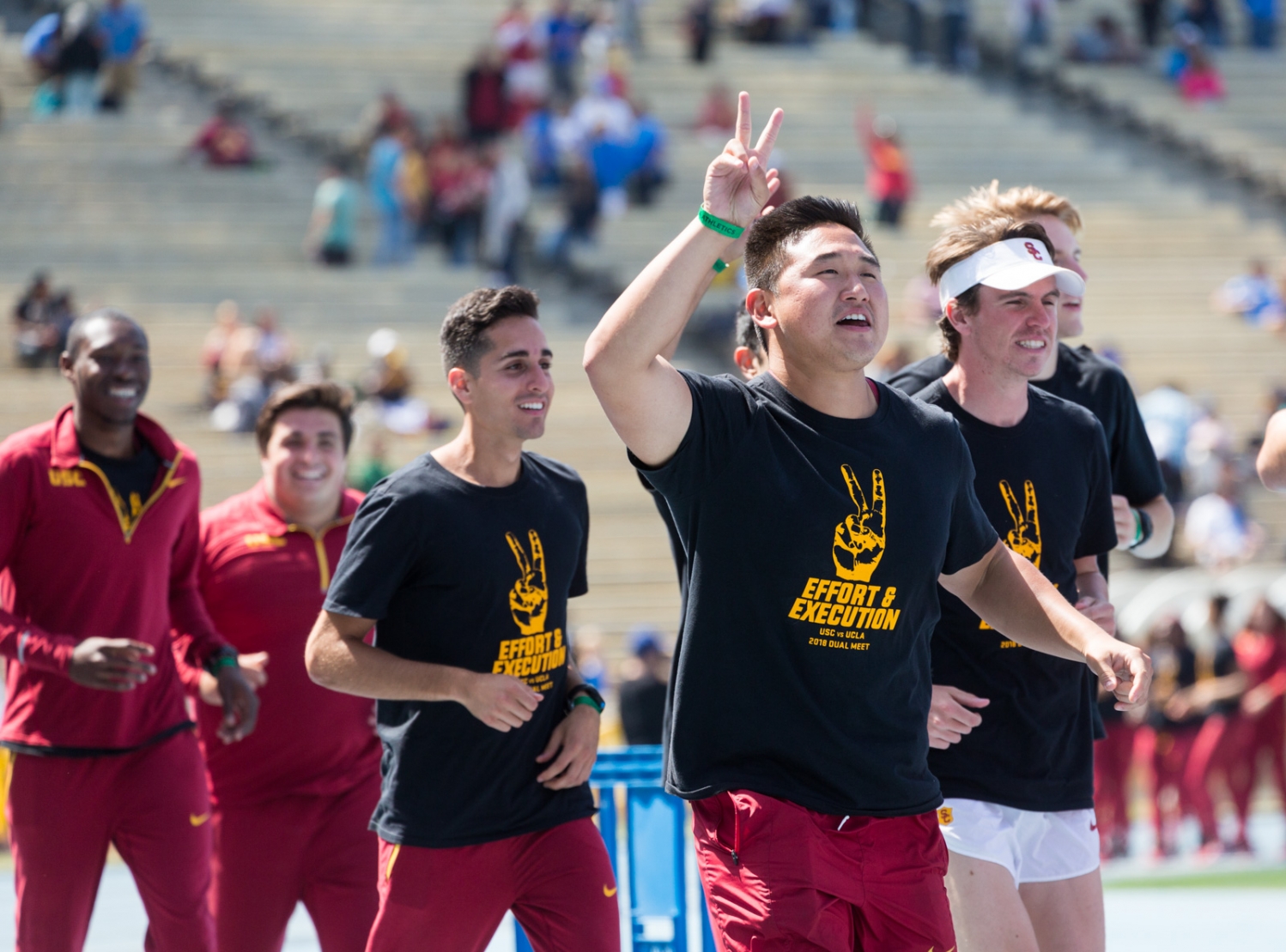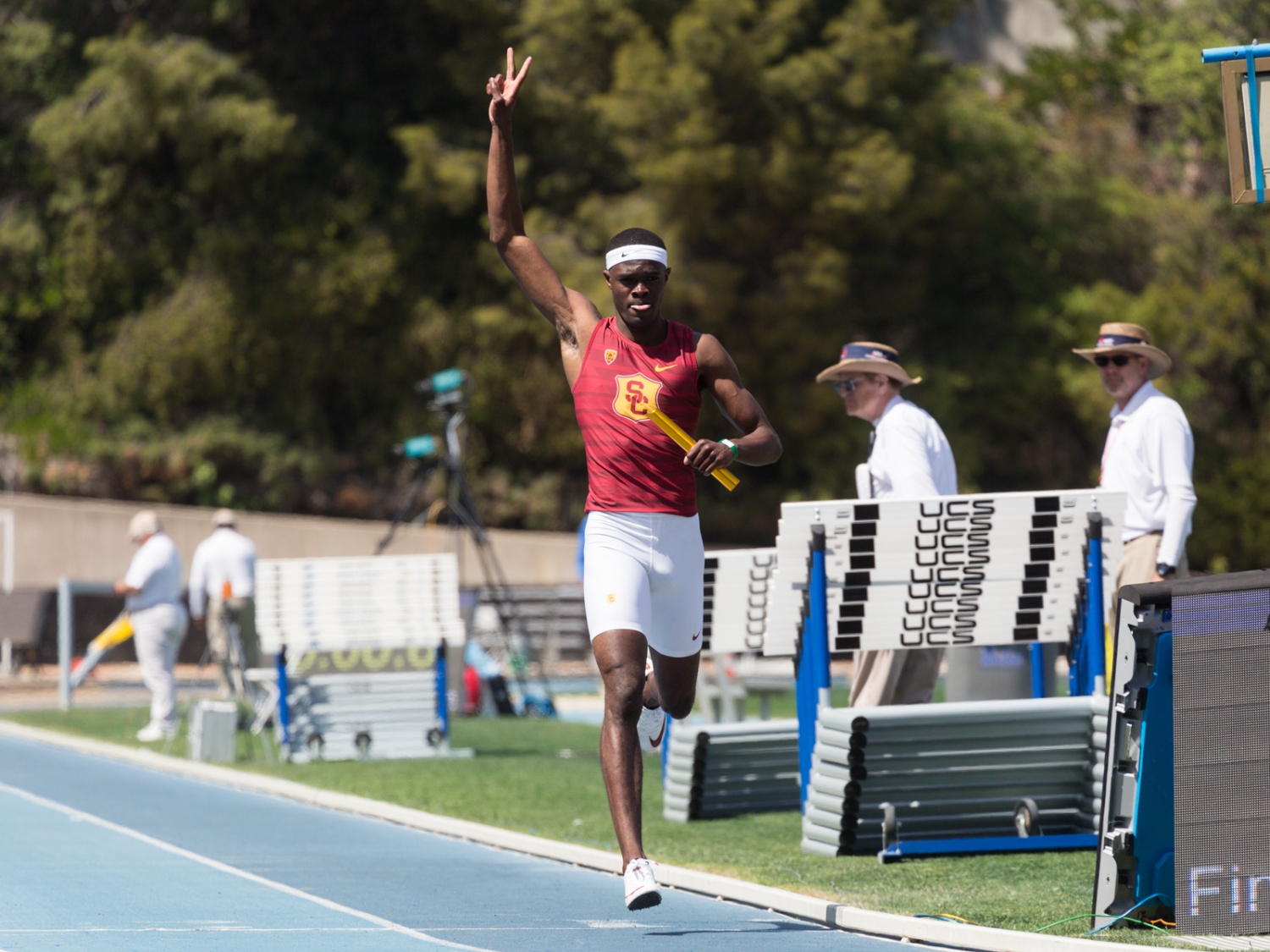 USC won the men's 4x100 meter relay with Benjamin running the last stretch. Benjamin used to run for UCLA track before transferring to USC in 2017.