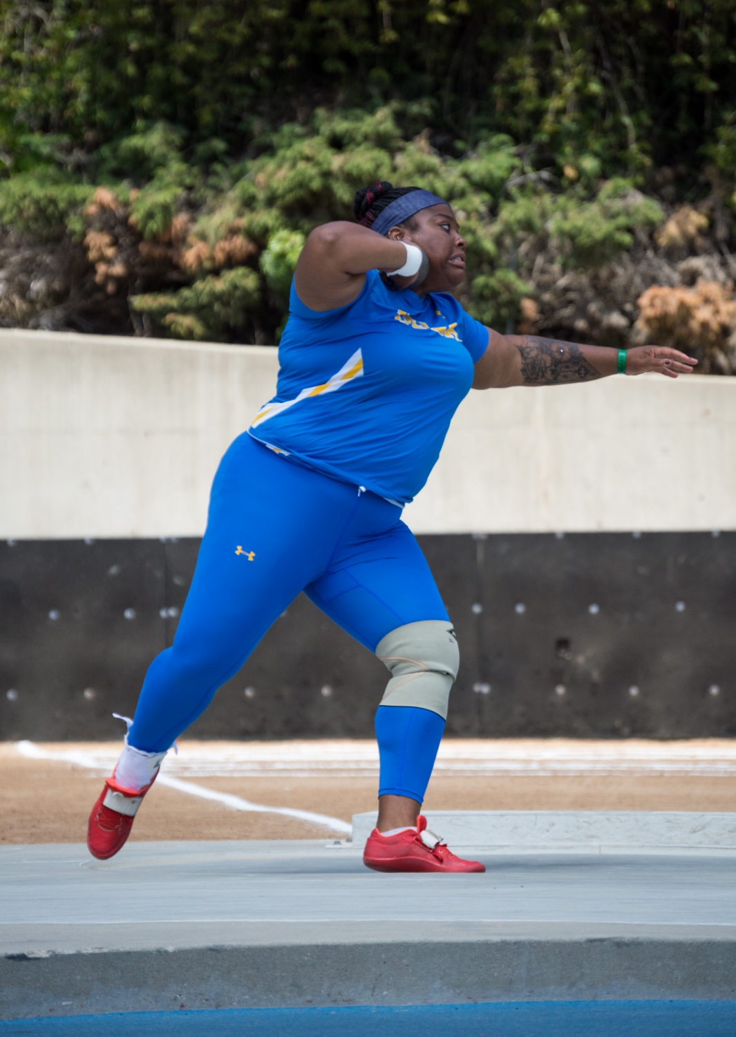 Redshirt junior Ashlie Blake throws 19.04 meters during the women's shot put event, which put her in first place.