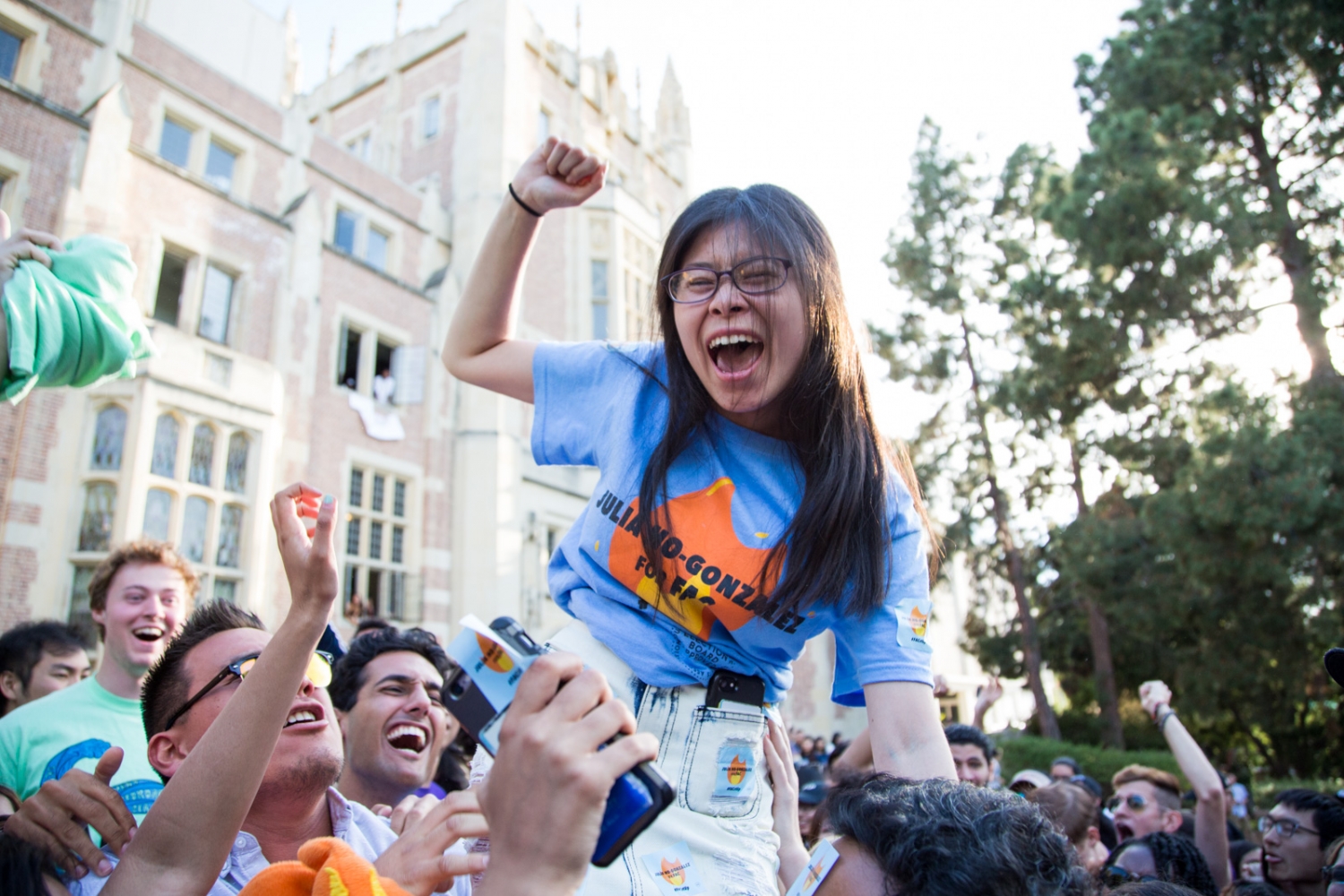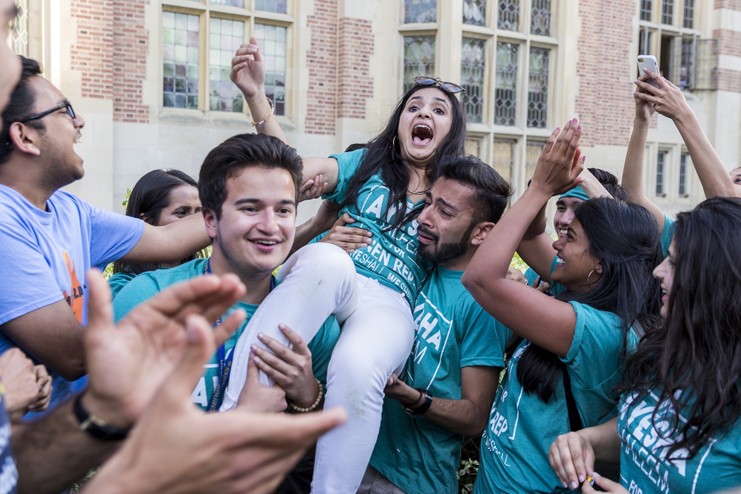 Bruins United candidate Bella Martin was elected as general representative 2. After the announcement, Martin quickly hugged and cheered with her team.