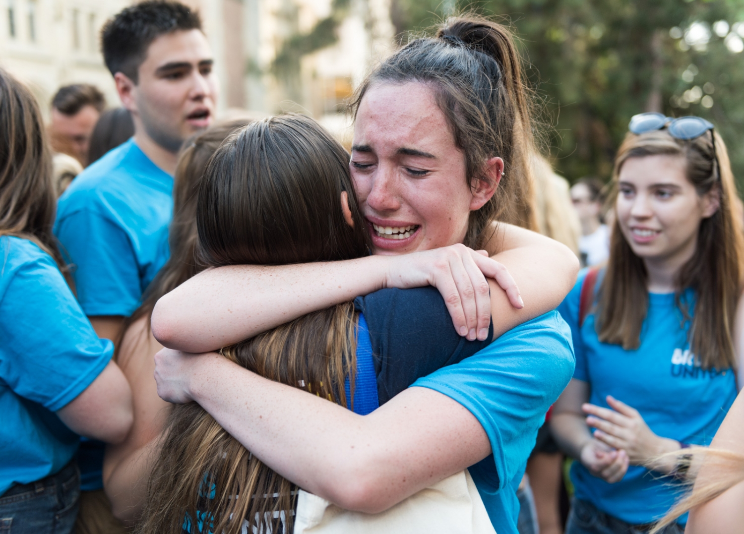 Claire Fieldman hugs and thanks her friends and team for helping her during the campaigning process. ''I have been thinking about this day for a really long time and to have it be a reality and to have the student body make the selection that they did is the biggest honor of my life,'' Fieldman said.