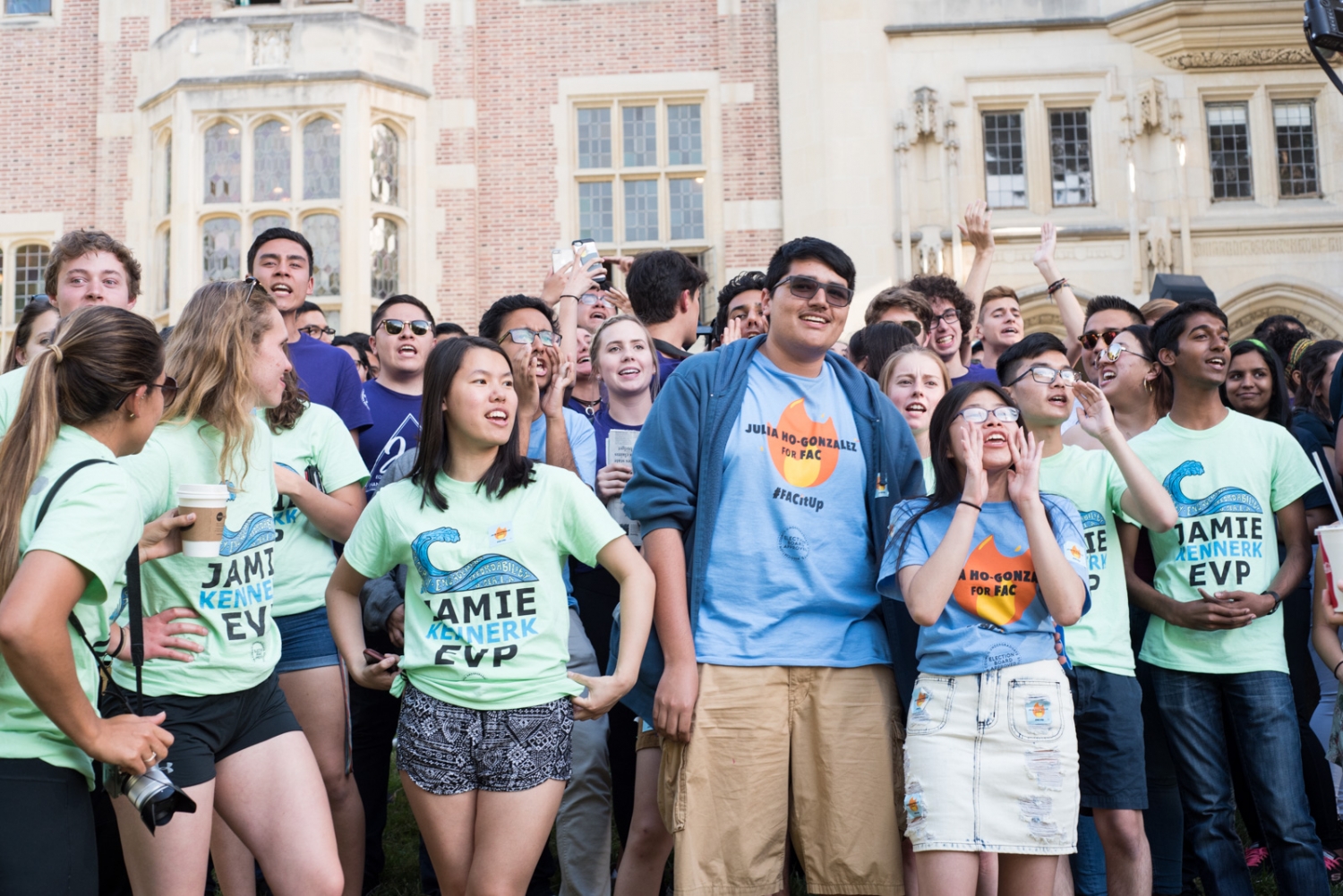 Candidates and supporters gathered in Meyerhoff Park today starting around 4:30 p.m. to hear the election results for this year’s USAC election.