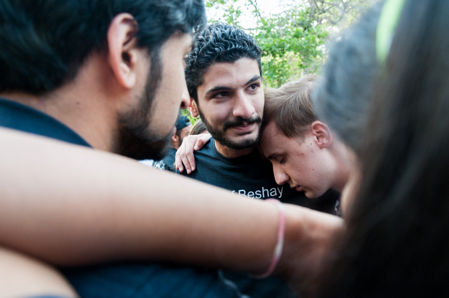 Kayla He, the 2017-2018 general representative 2, and independent candidates hold hands in support after arriving at Meyerhoff Park to hear the election results.