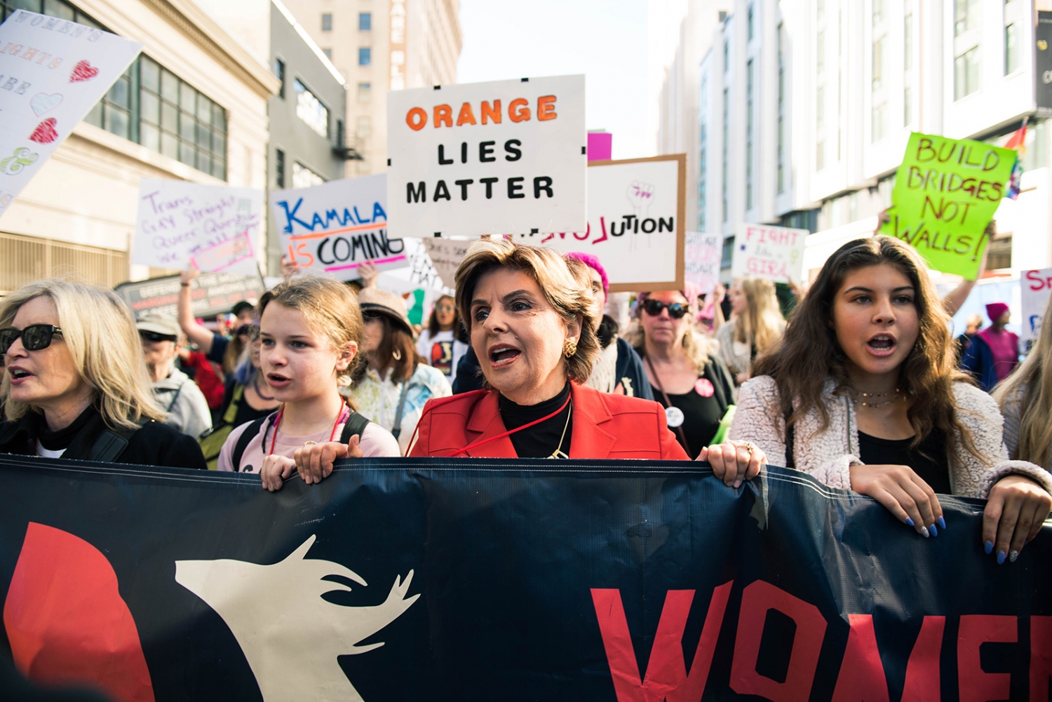 Gloria Allred, a founding partner of the law firm of Allred, Maroko & Goldberg, leads the crowd during the first minutes of the march. Allred’s law firm handles more women’s rights cases than any other private law firm in the nation.
