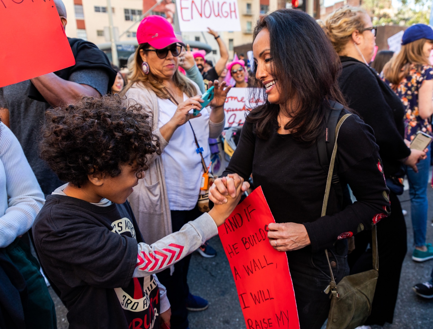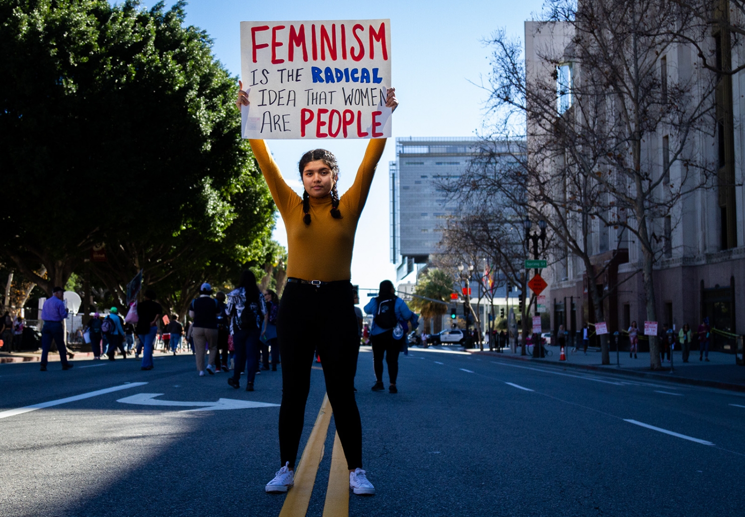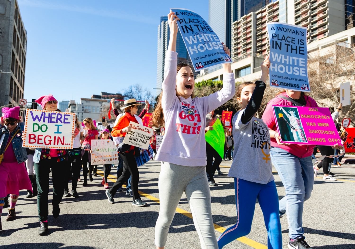 Adults and children alike marched through the streets of LA bearing signs of female empowerment and gender equality.