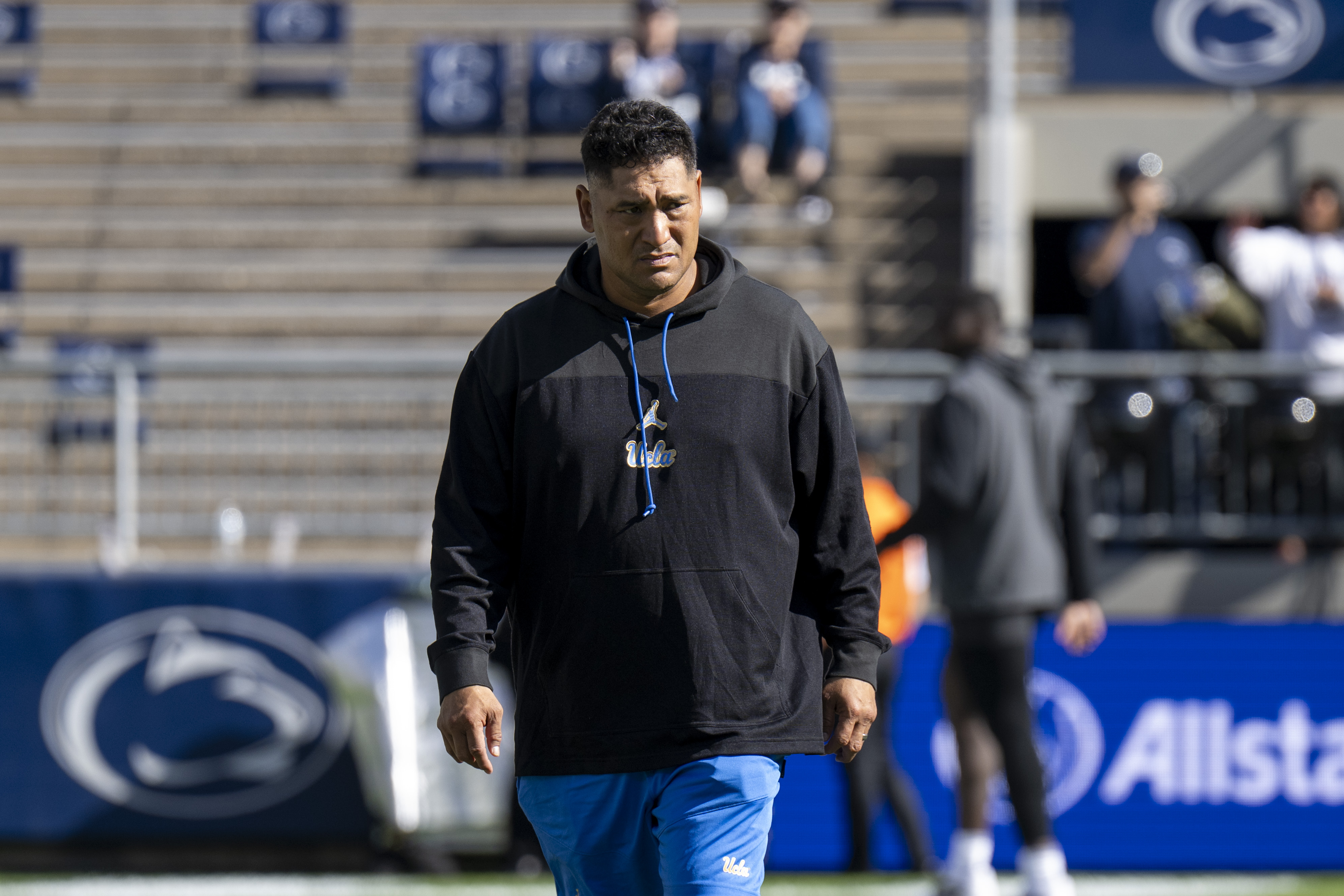 UCLA football assistant coach and defensive coordinator Ikaika Malloe walks on the field at Beaver Stadium. (Aidan Sun/Assistant Photo editor)
