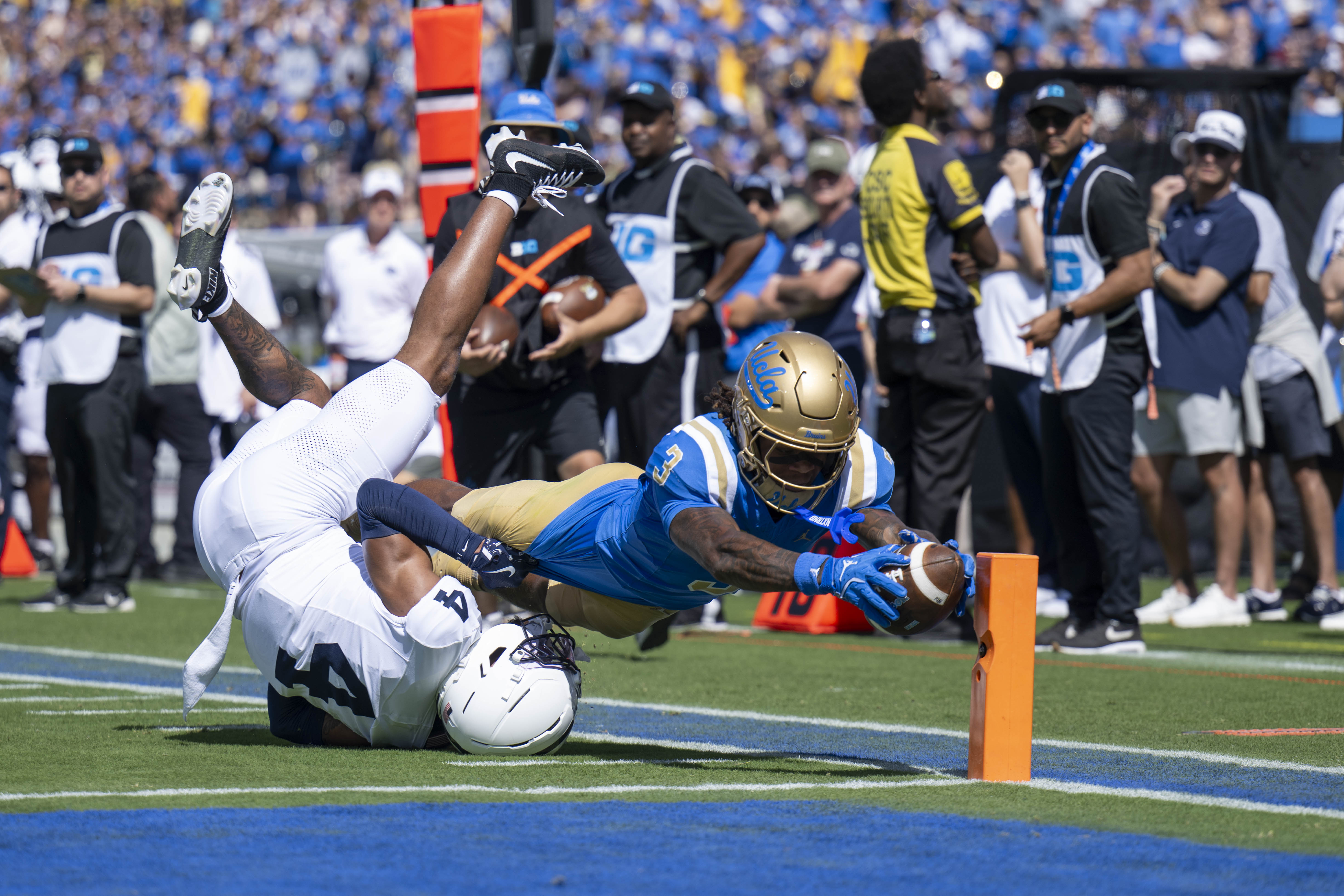 Fueled by 27 first-half points – more than in its first four games combined – and reverberating “Jerry” chants from the Bruin faithful, UCLA football (1-4, 1-1 Big Ten) defeated No. 7 Penn State (3-2, 0-2) 42-37 at the Rose Bowl on Saturday in the team’s first home game of the season with students back on campus for the fall quarter.