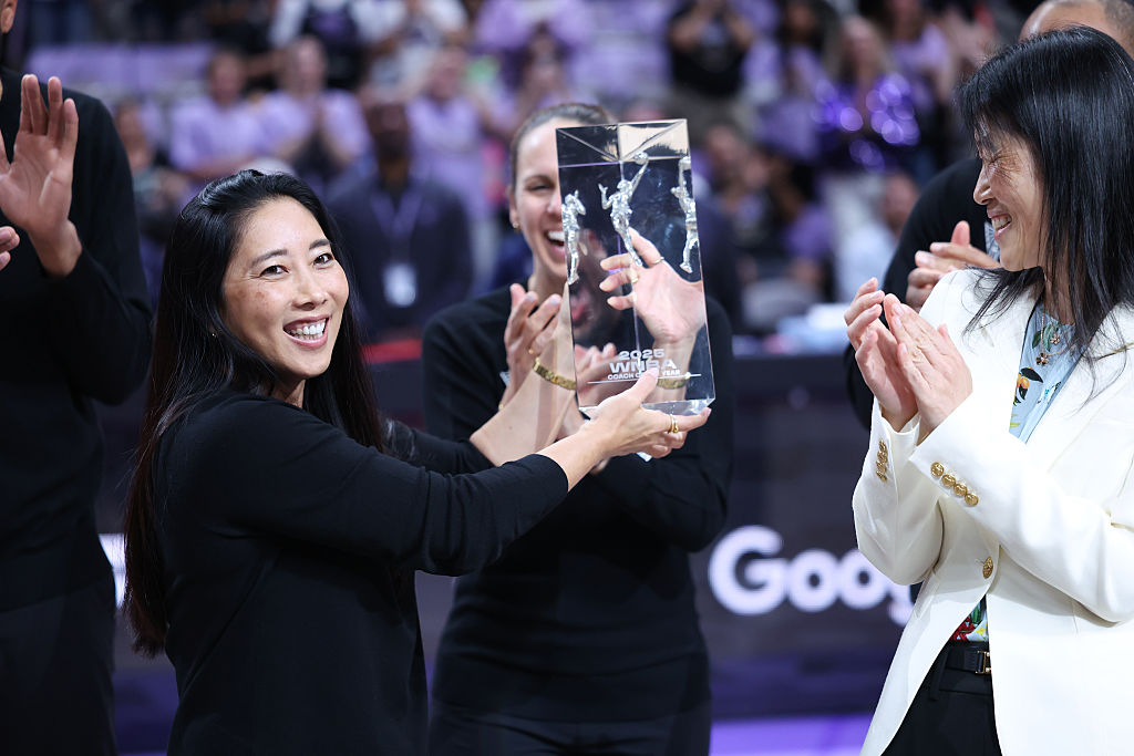 The thousands of roaring “Ballhalla” fans clad in violet and gold were not cheering on a player, though. They were losing their voices for Nakase, who hoisted the glass 2025 WNBA Coach of the Year trophy.