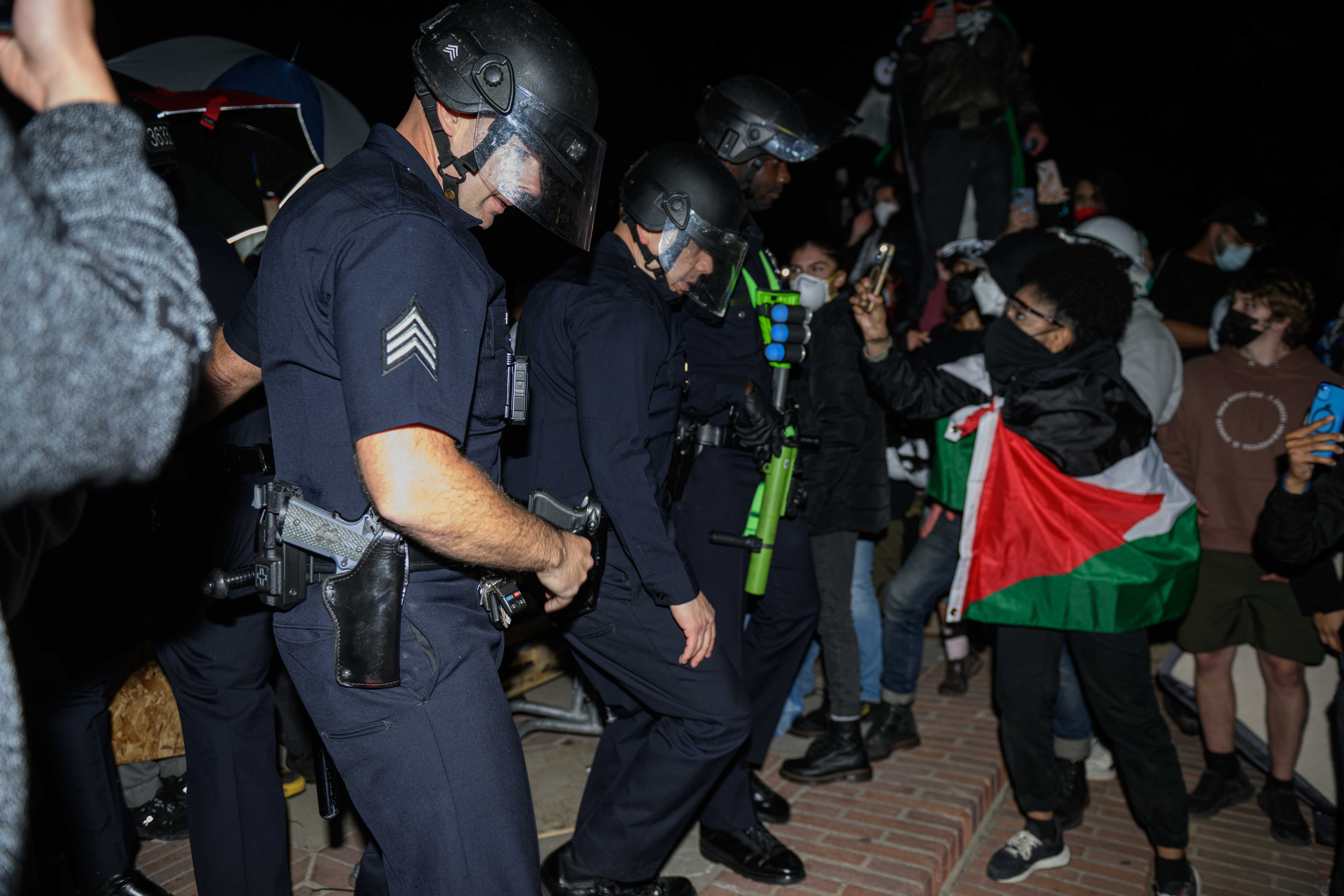 In 2024, students set up encampments to protest UC investments in companies that manufacture weapons for the Israeli military. The encampment sparked counterprotests, leading to violent clashes. The event ended with LAPD and California Highway Patrol officers using less-than-lethal force to sweep the entire encampment – a move that drew lawsuits and scrutiny from experts.