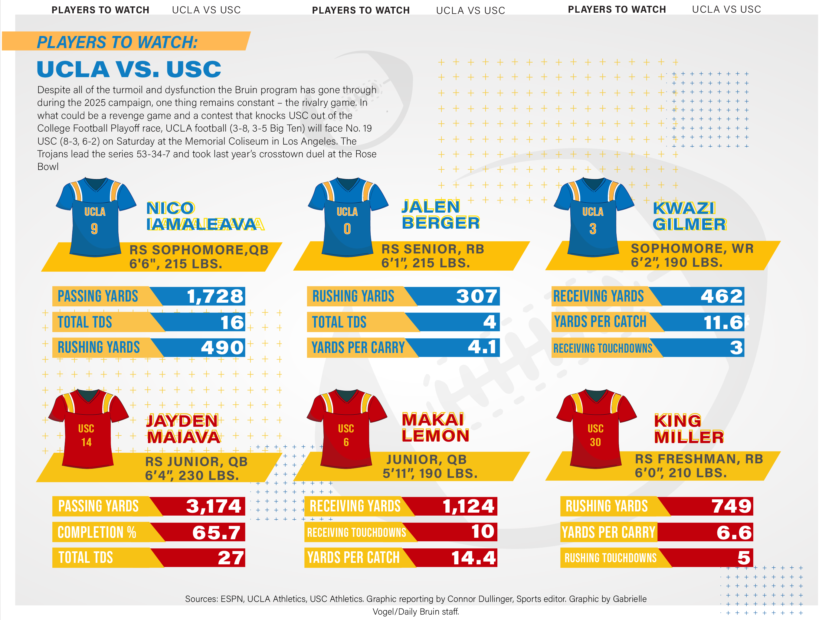 A glimpse into the key players of Saturday’s UCLA vs USC football rivalry matchup