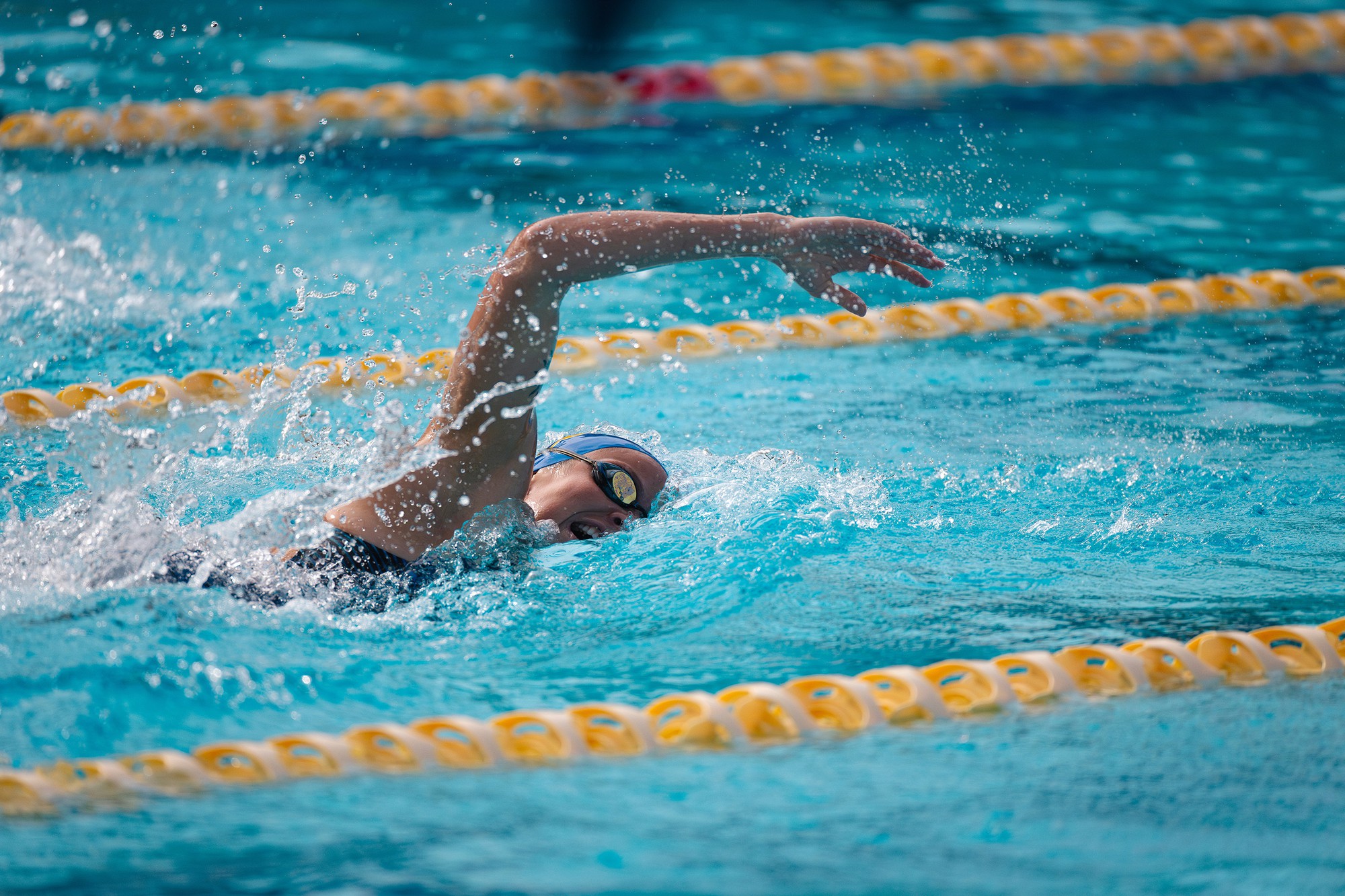 A UCLA swimmer freestyles through the water. (Courtesy of UCSD Athletics)