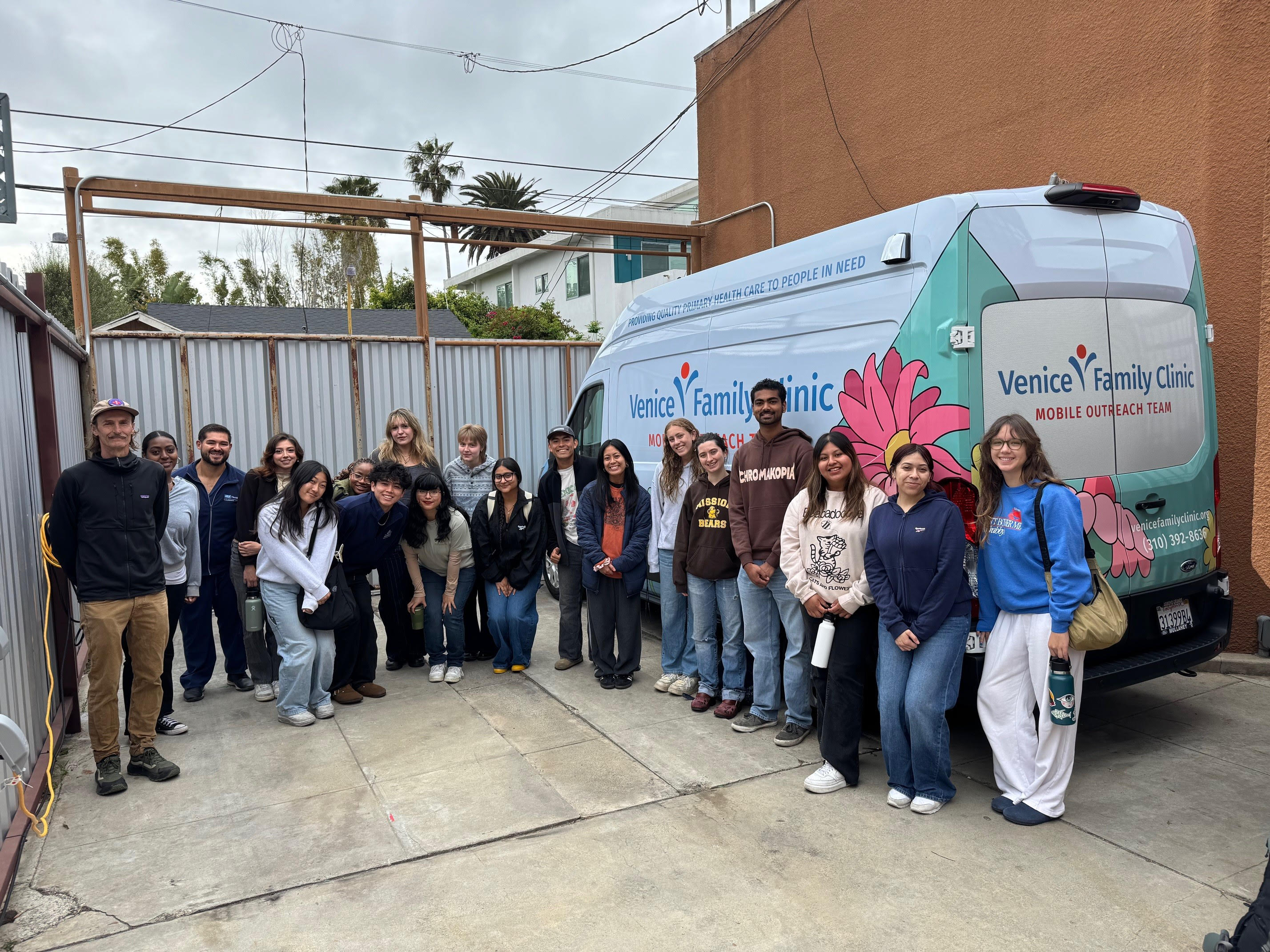 Members of the pinkLab is pictured with Venice Family Clinic as part of the Mobile Clinic Project service-learning course. (Courtesy of Sarah Blenner)