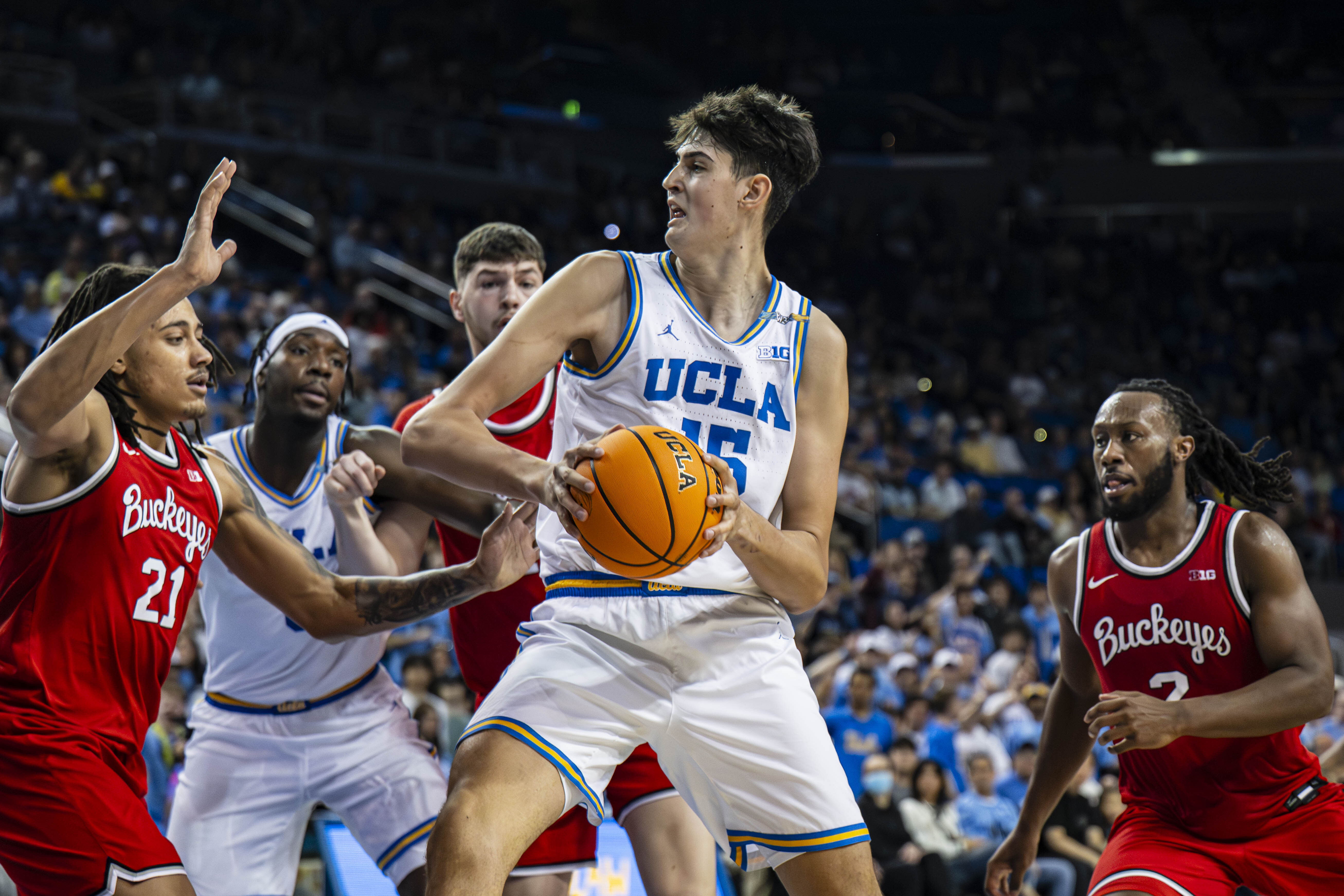 Despite Cronin’s guidance, it seemed “legal-physical” defending did little to stifle former Bruin Aday Mara. The center attacked every facet of the Bruins game, dominating the defensive interior with eight rebounds and three rejections, but also facilitating the offense with nine points and three assists.