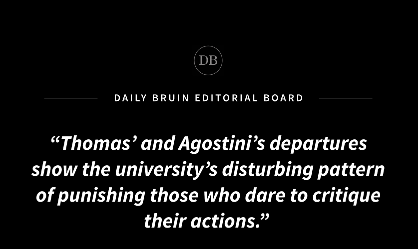 Editorial: Agostini’s departure after interview with The Bruin shows UCLA punishes transparency