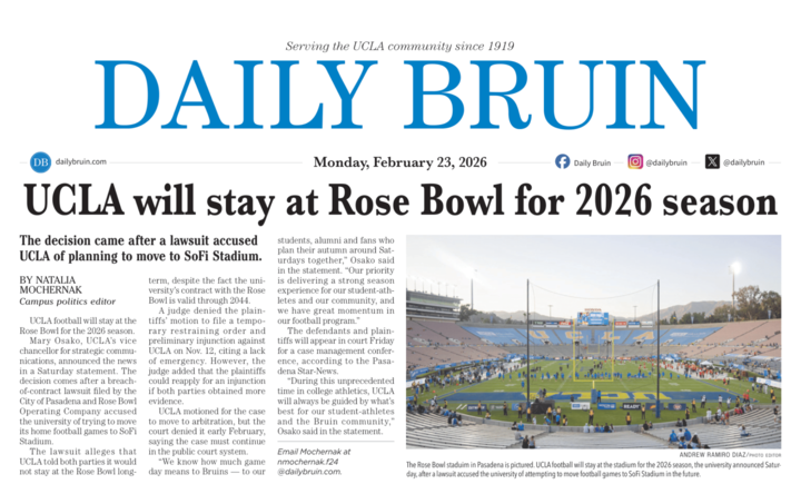 The Daily Bruin publishes print issues every Monday, Wednesday and Friday during the school year. You can view the online version of The Bruin here.