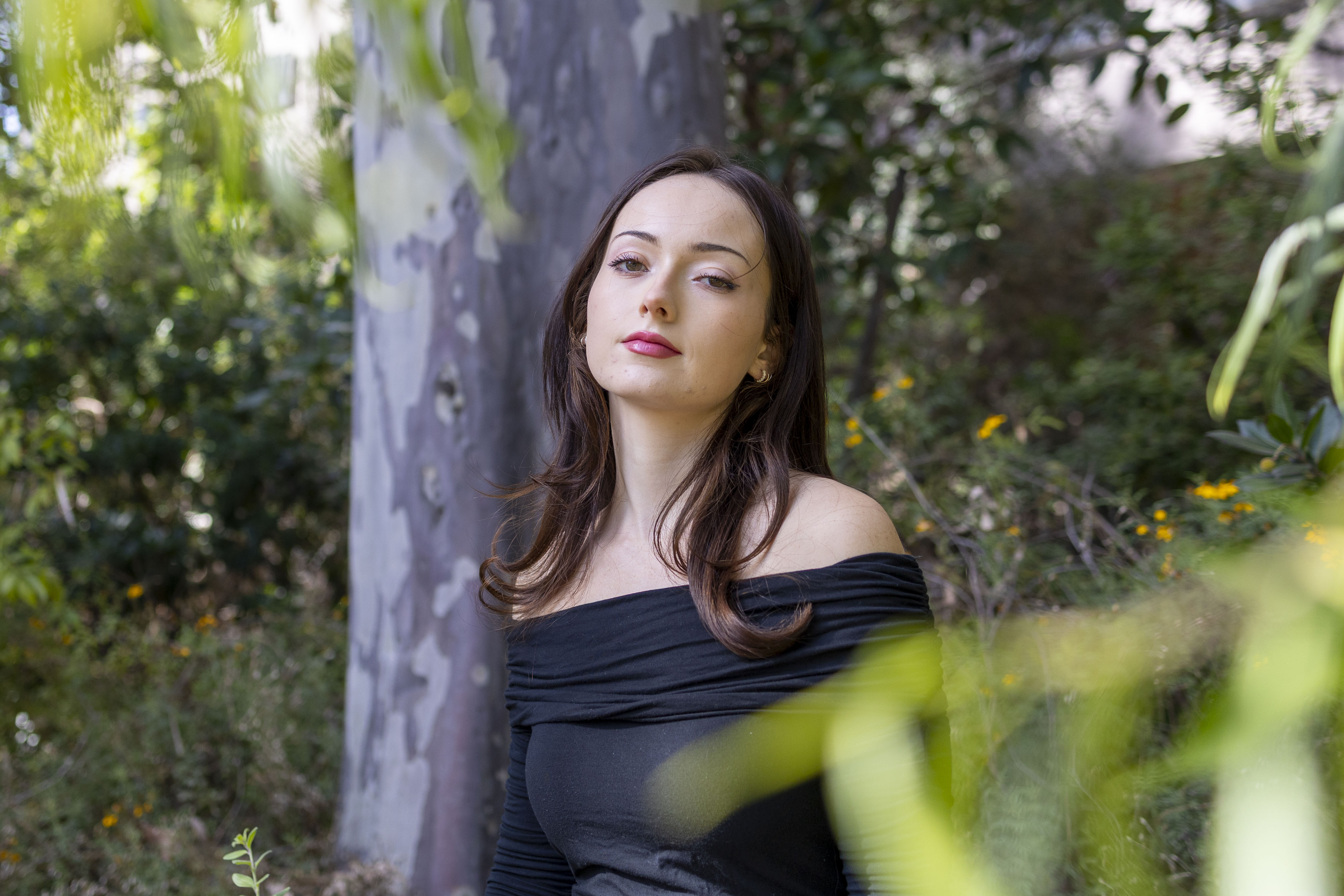 Pictured is first-year music industry student Lily Sturges posing in front of a tree. Sturges released her first single since starting at UCLA, “Want You Back,” with the student-led record label Cherry Pop Records. (Chenrui Zhang/Daily Bruin)